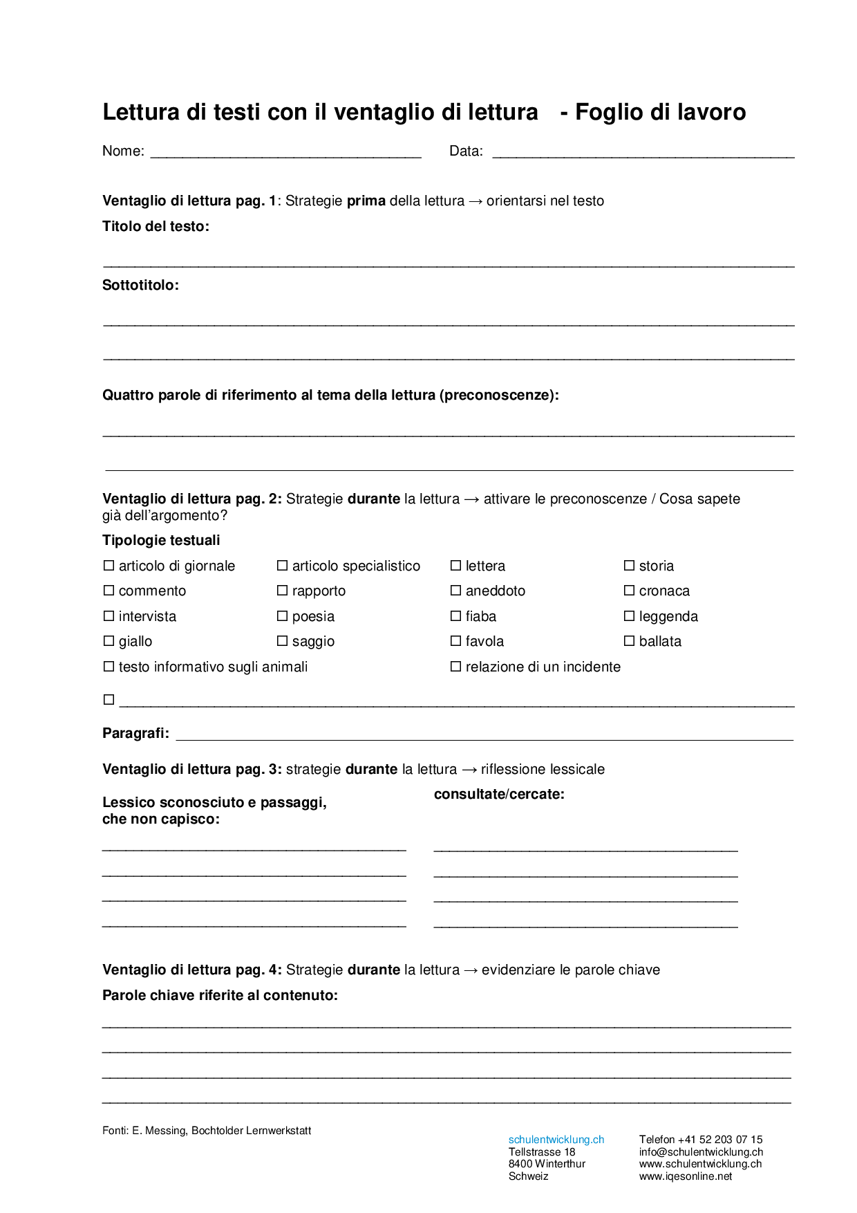 Raccolta di tipologie di attività per lo sviluppo della competenza di lettura