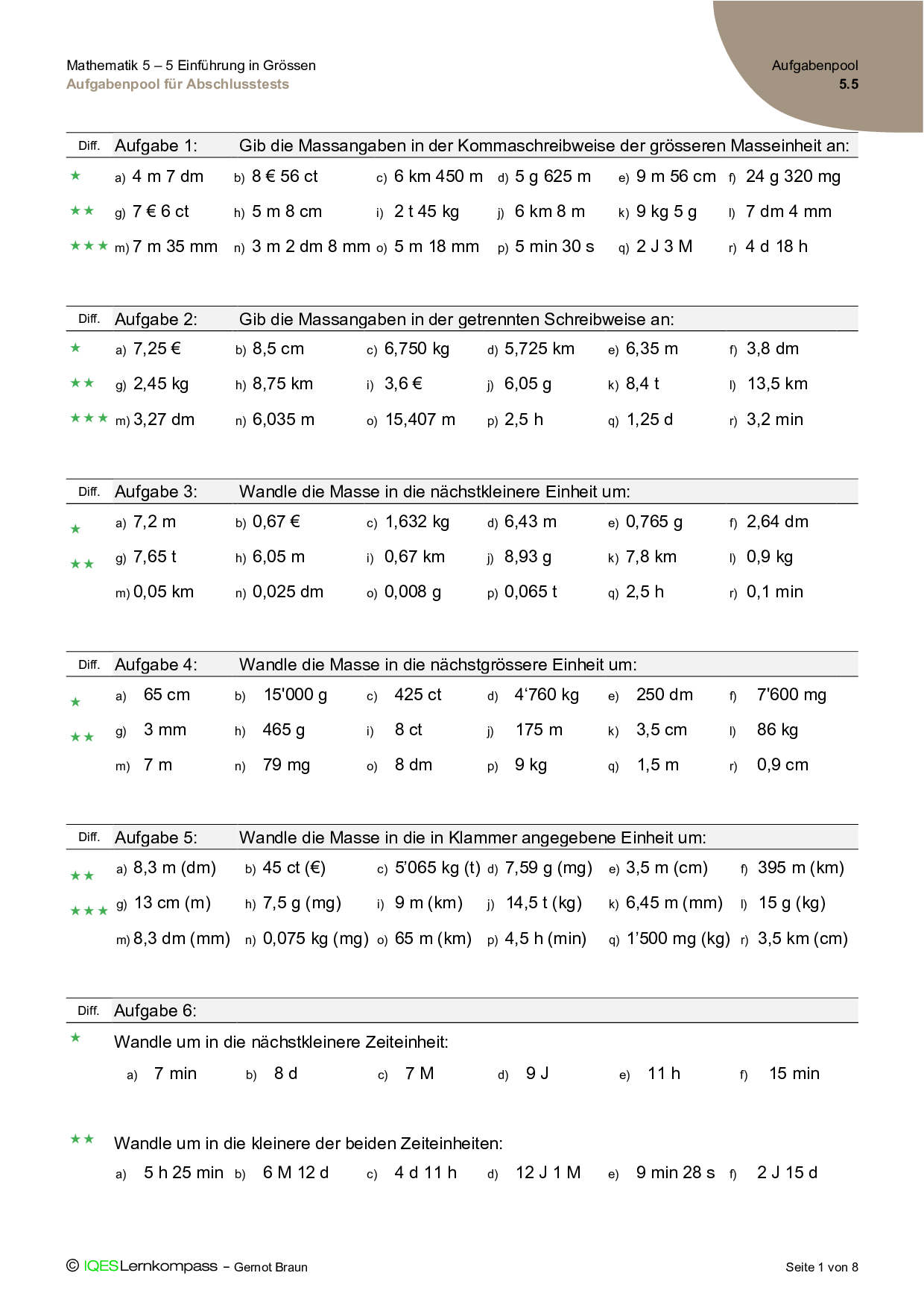 5.5 Einführung in Grössen – Aufgabenpool für Abschlusstests