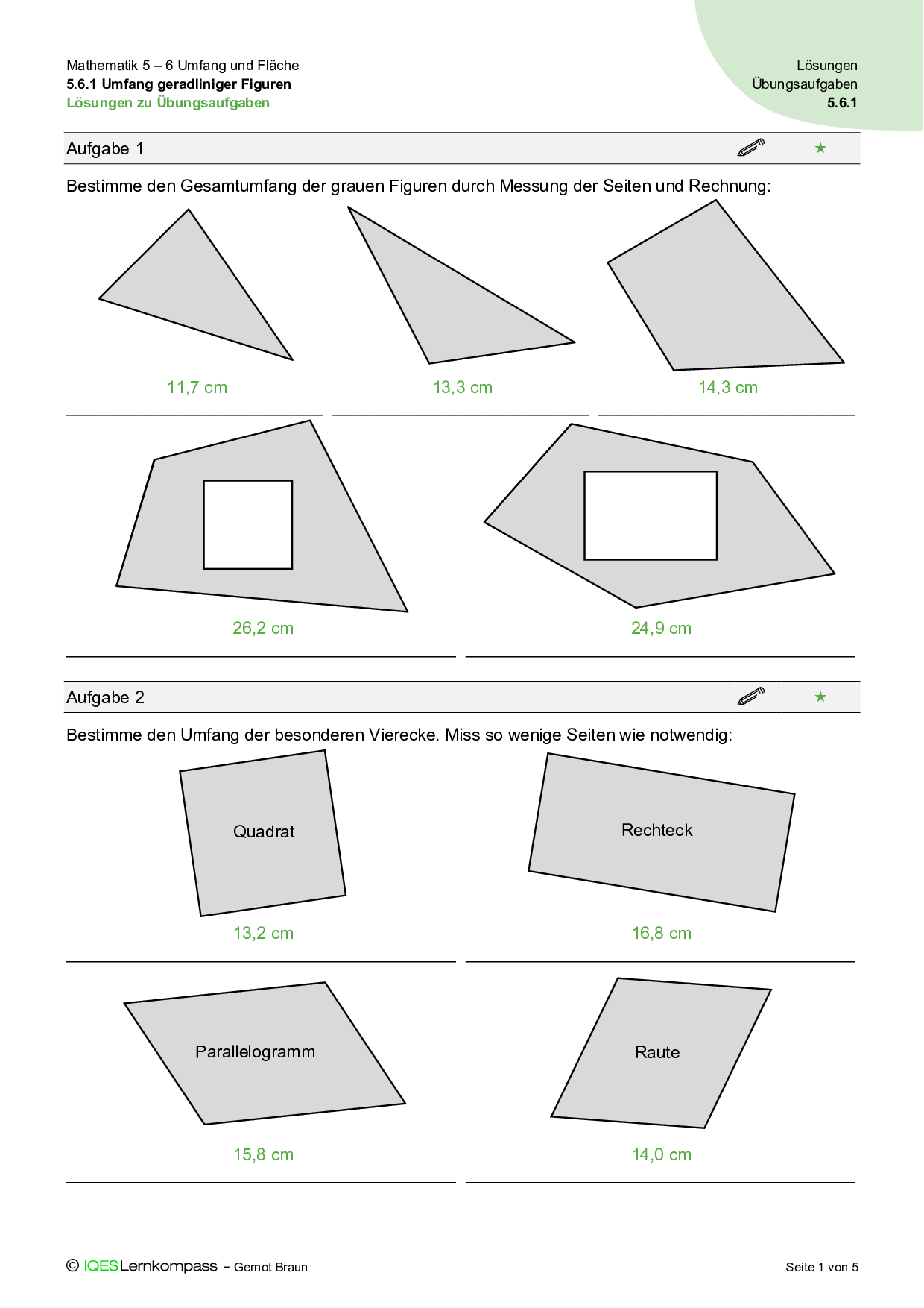 5.6.1 Umfang geradliniger Figuren – Übungsaufgaben mit Lösungen