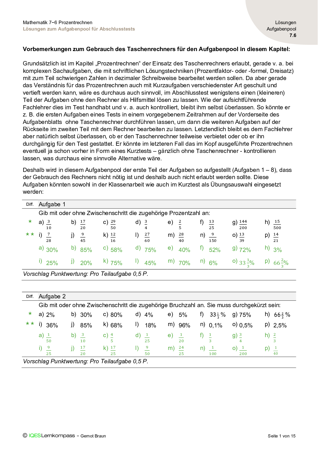 7.6 Prozentrechnen – Lösungen zum Aufgabenpool für Abschlusstests