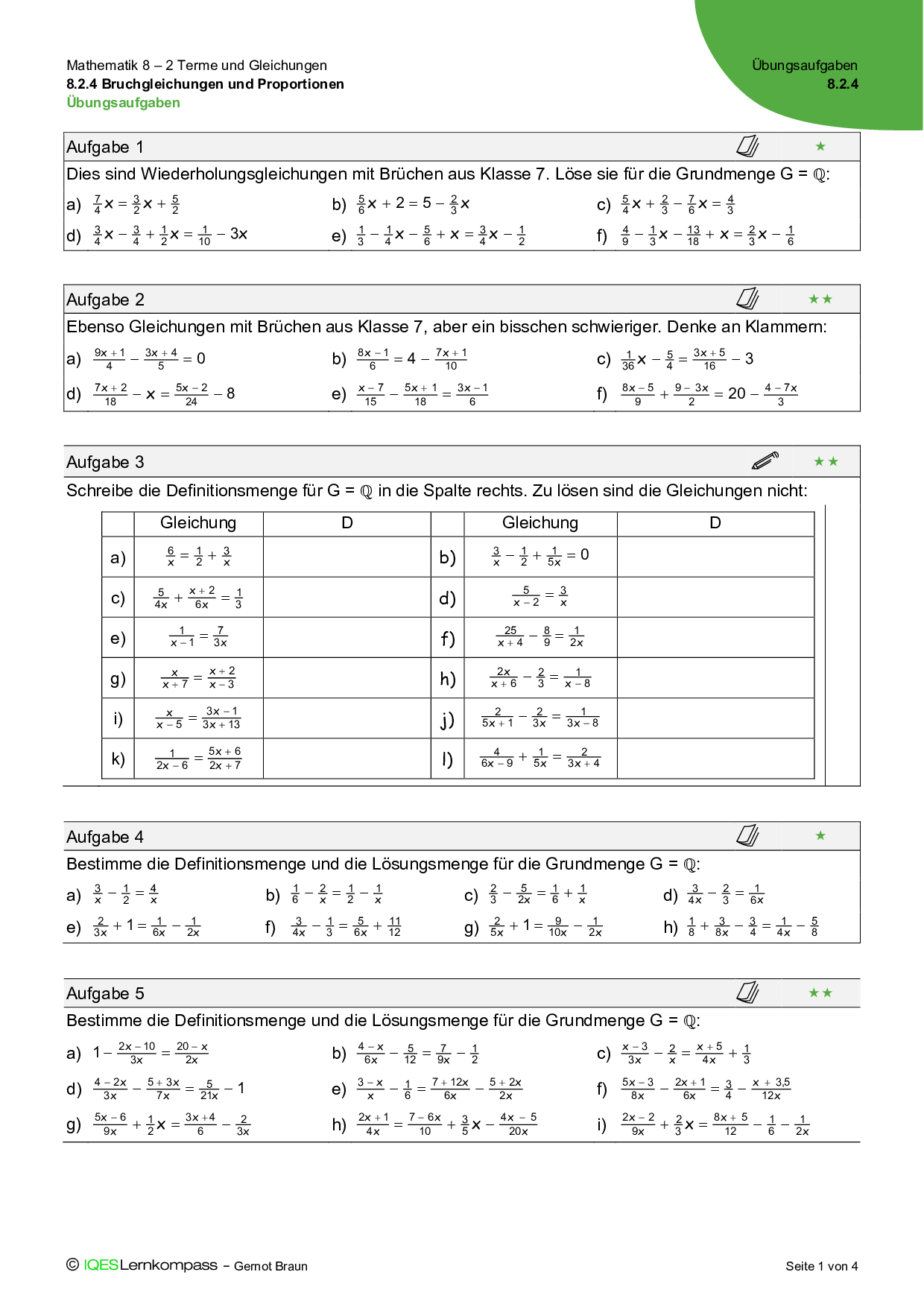 8.2.4 Bruchgleichungen und Proportionen – Übungsaufgaben