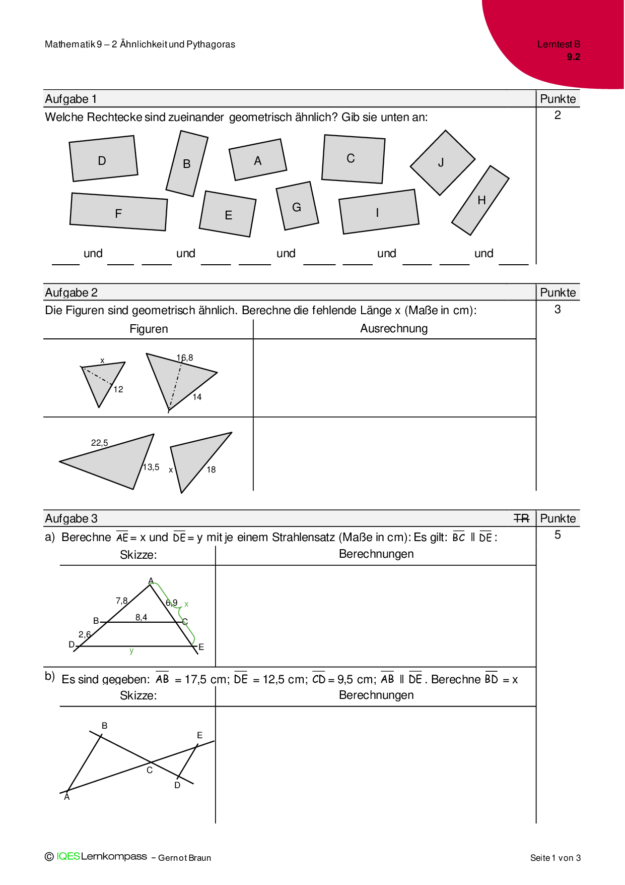 9.2 Ähnlichkeit und Pythagoras - Lerntest B