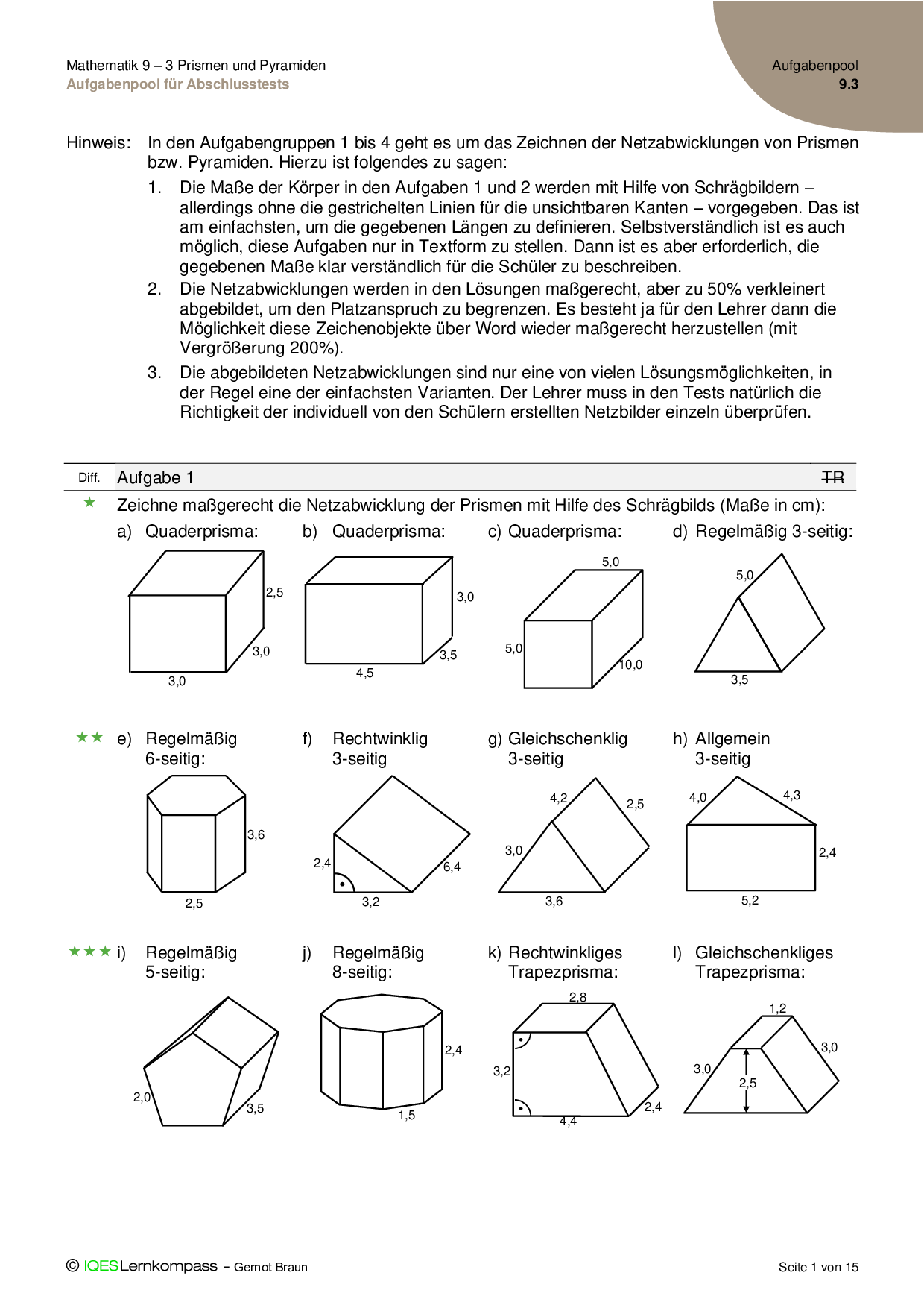 9.3 Prismen und Pyramiden - Aufgabenpool für Abschlusstests