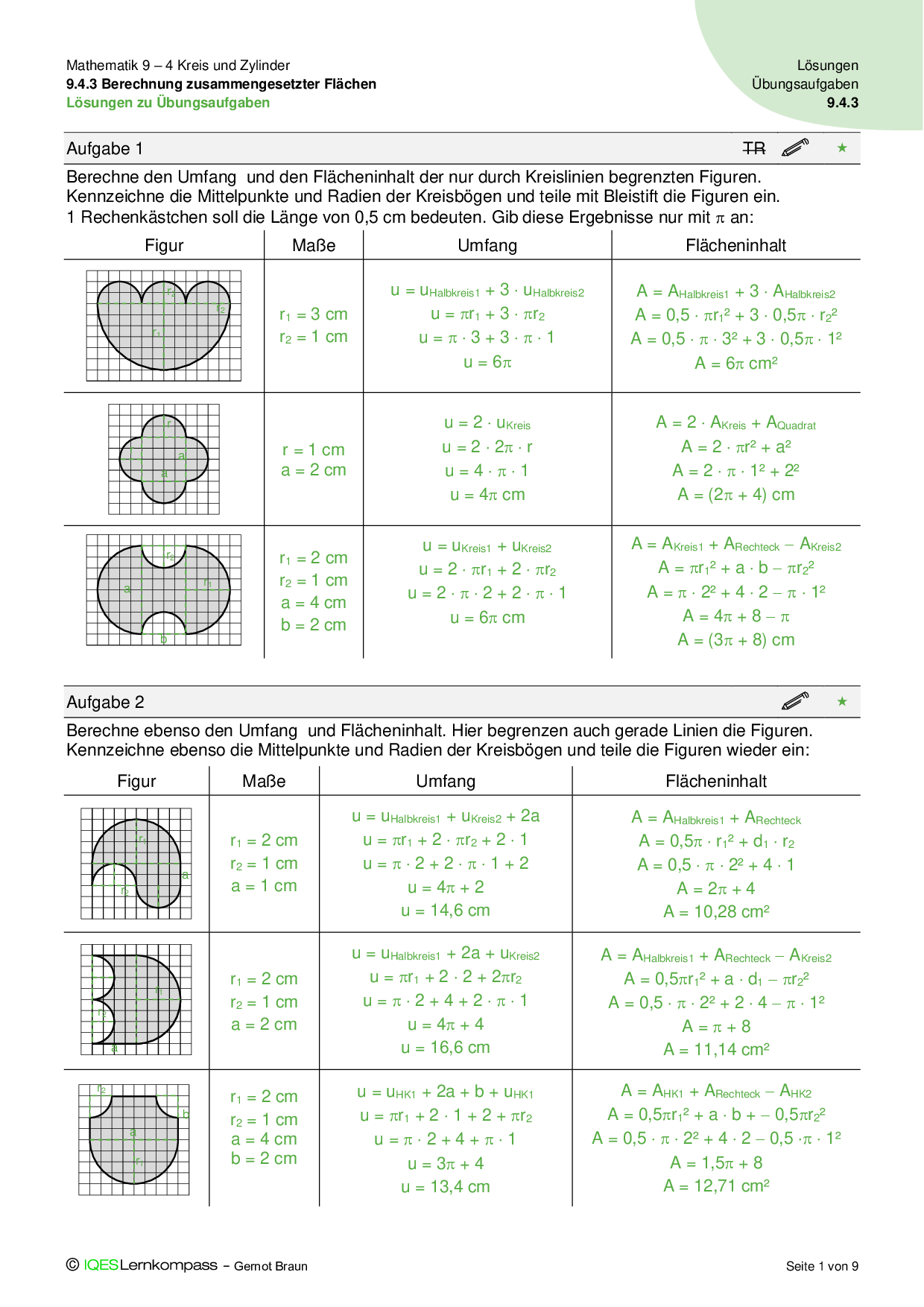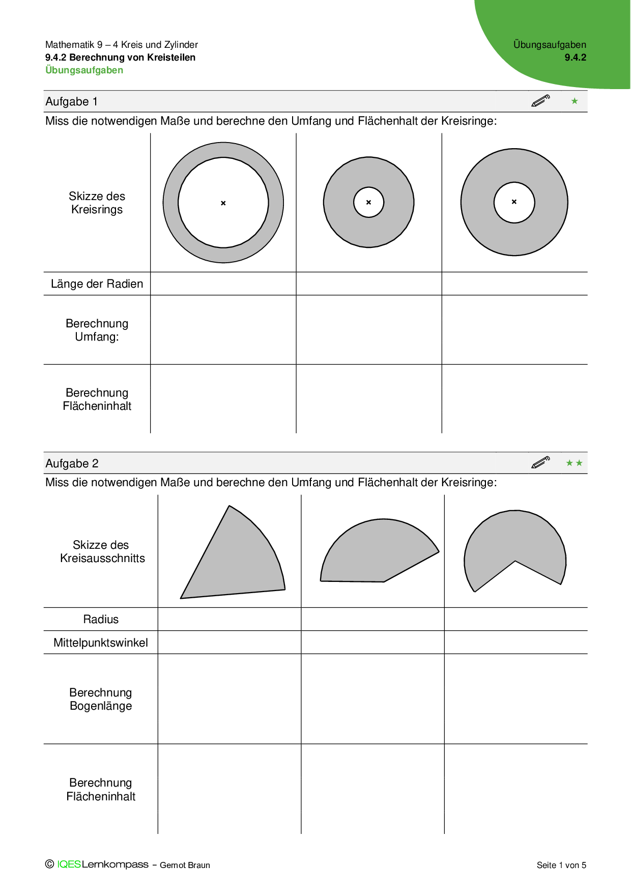9.4.2 Berechnung von Kreisteilen - Übungsaufgaben