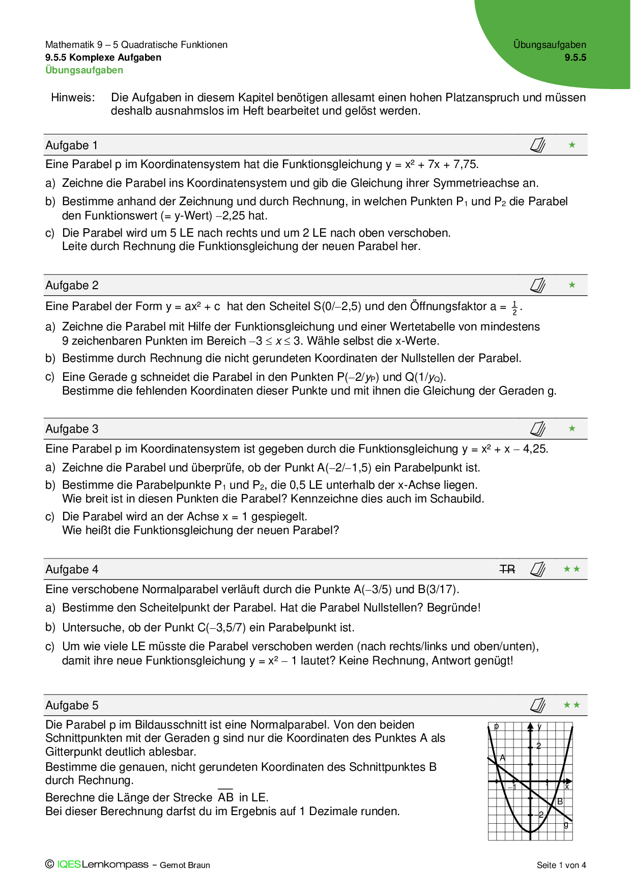 9.5.5 Komplexe Aufgaben - Übungsaufgaben