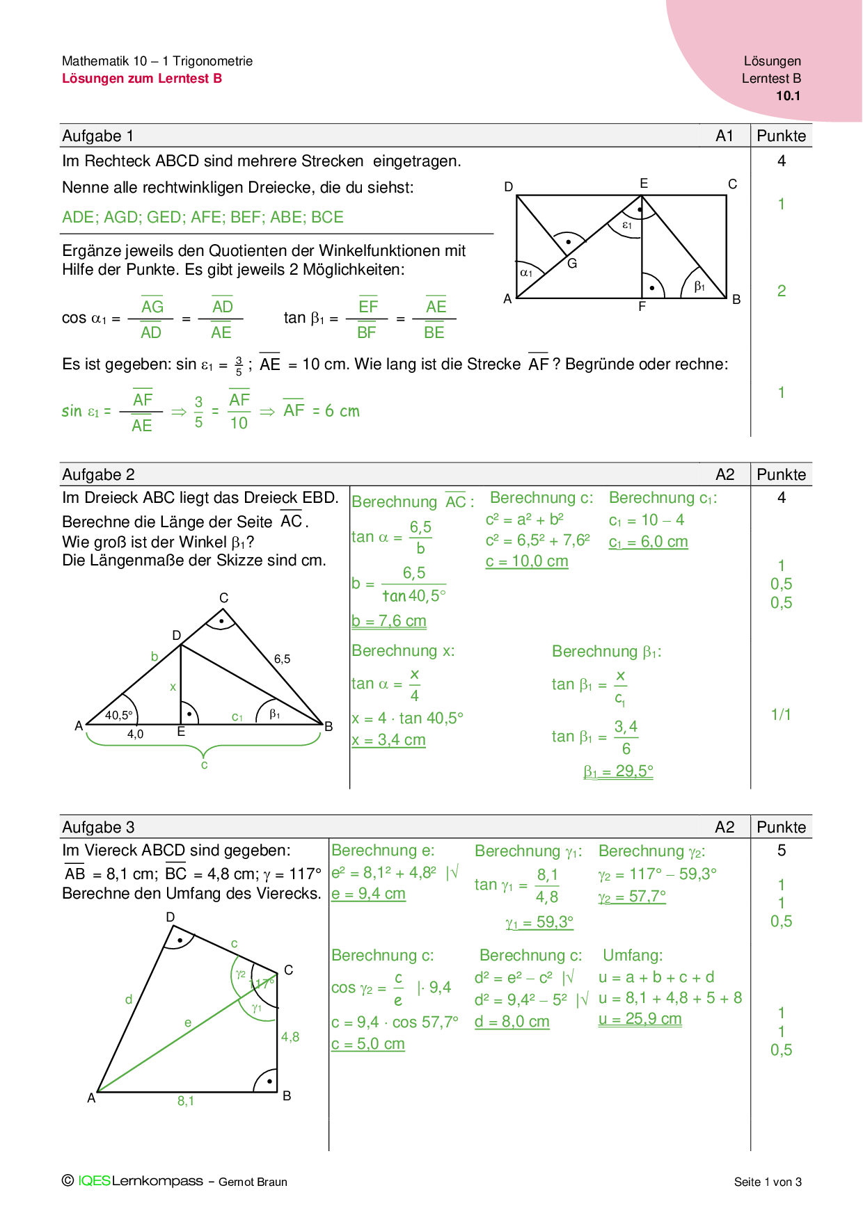 10.1 Trigonometrie Lösungen zum Lerntest B