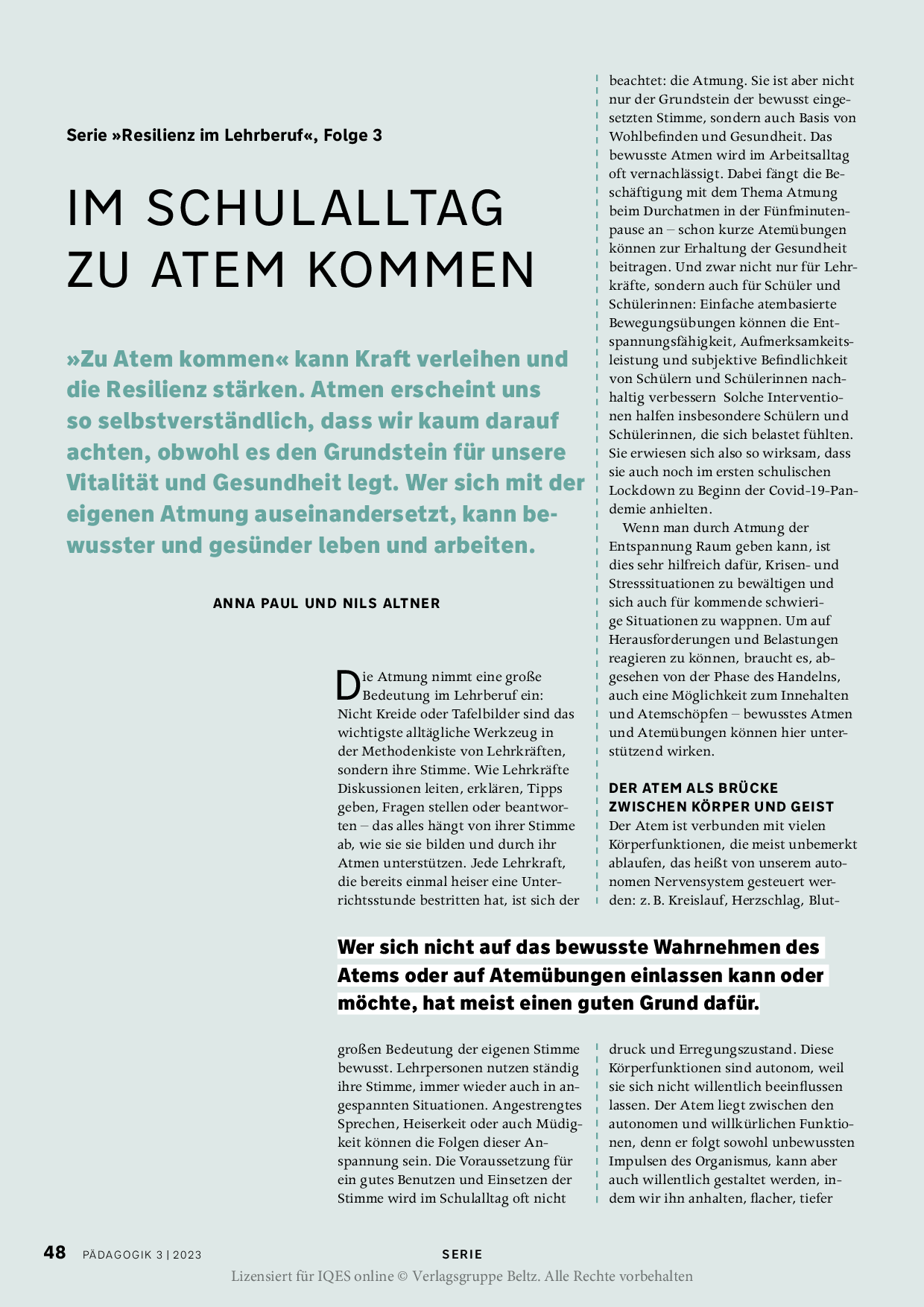 Herkunft: PÄDAGOGIK 03/23, Lizensiert für IQES online © Verlagsgruppe Beltz.