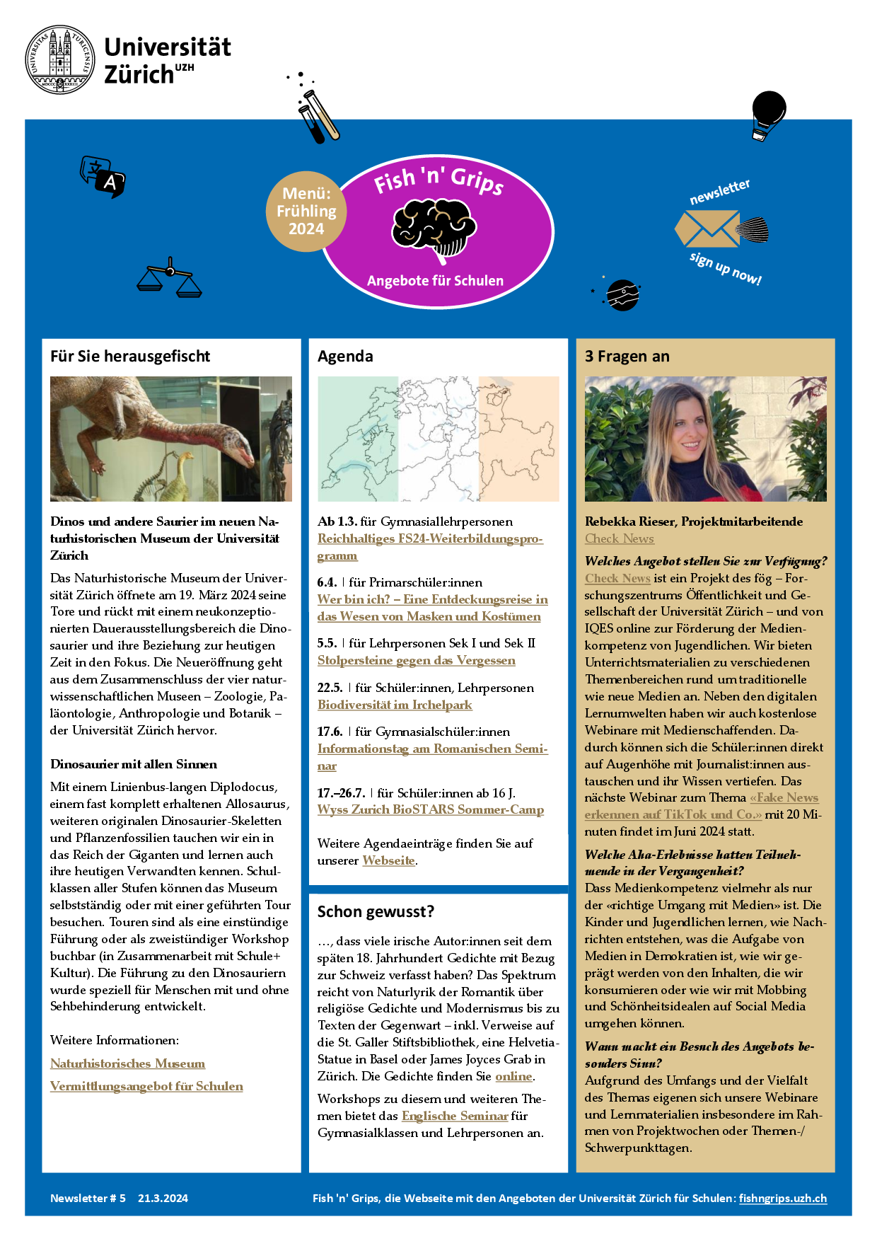 Herkunft: Newsletter von Fish 'n' Grips, die Webseite mit den Angeboten der Universität Zürich für Schulen