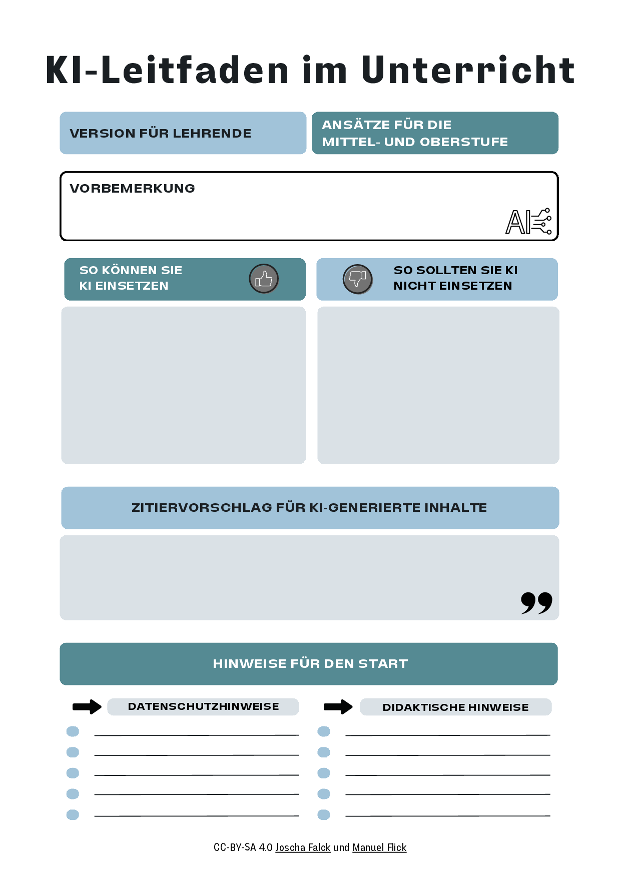 KI-Leitfaden für den Unterricht - leer (Lehrende)