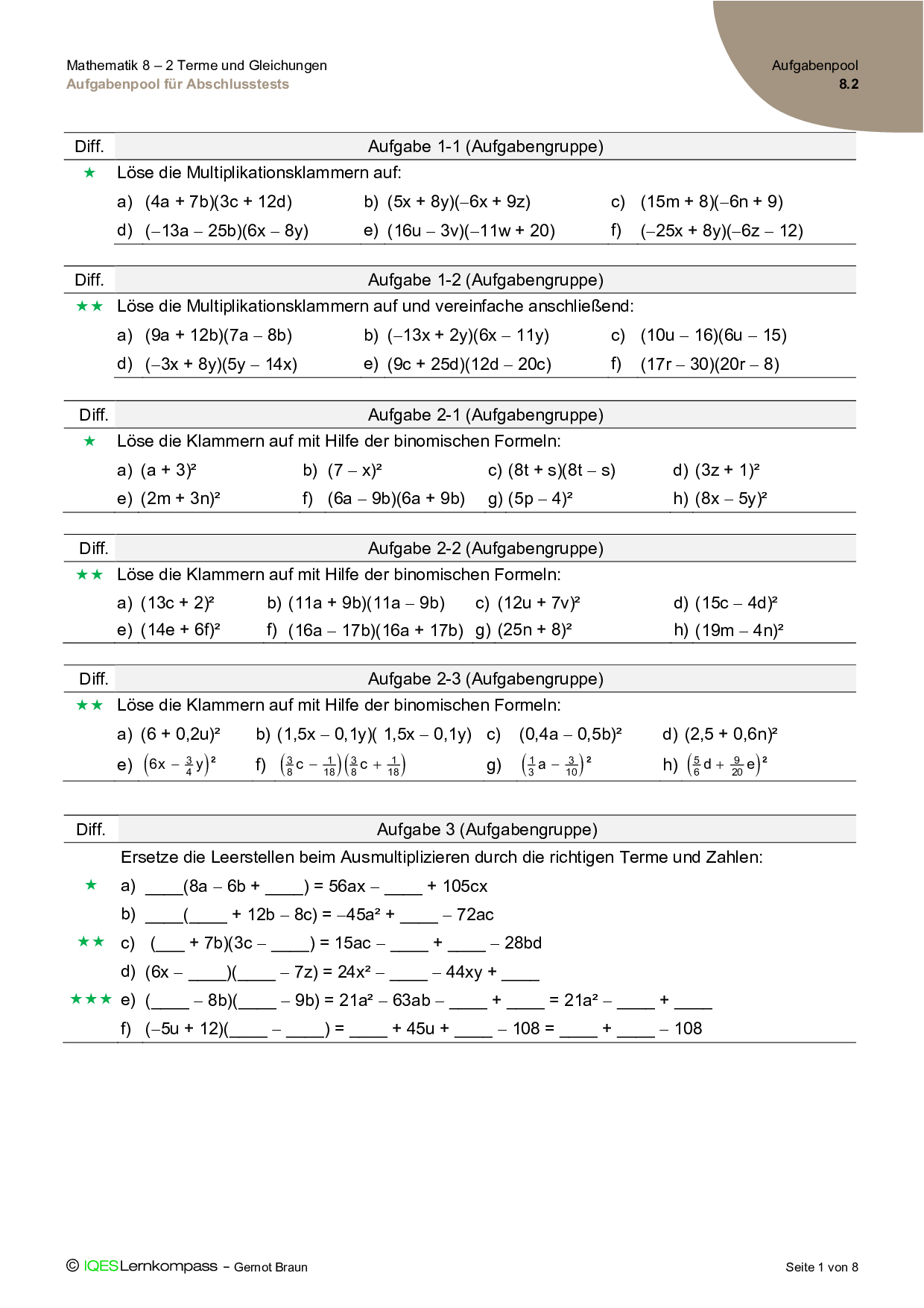 8.2 Terme und Gleichungen – Aufgabenpool für Abschlusstests