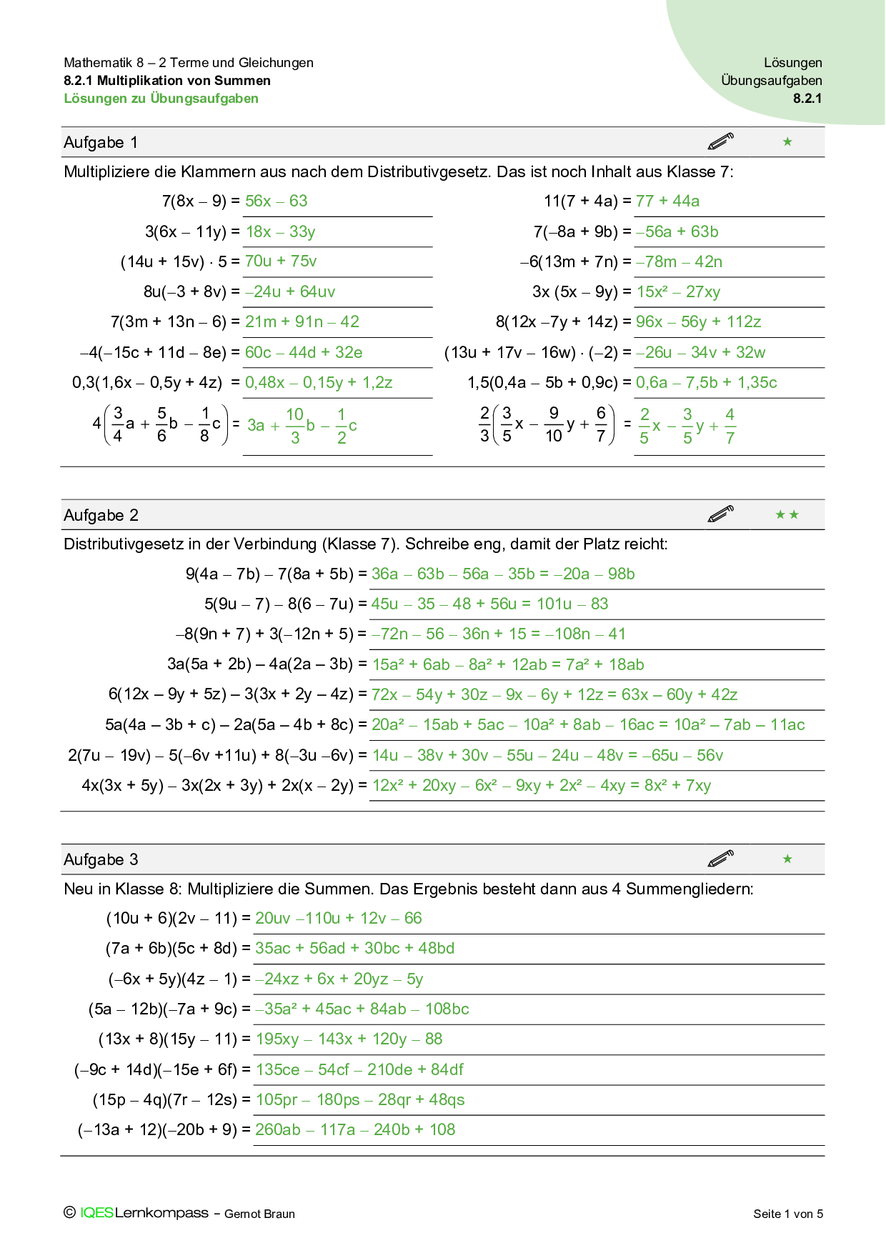 8.2.1 Multiplikation von Summen – Übungsaufgaben mit Lösungen