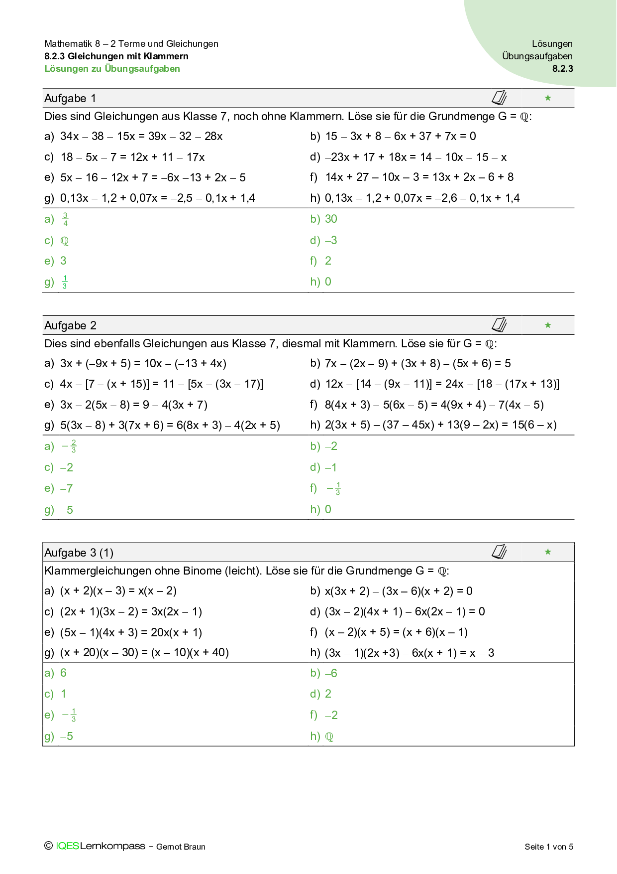 8.2.3 Gleichungen mit Klammern – Übungsaufgaben mit Lösungen
