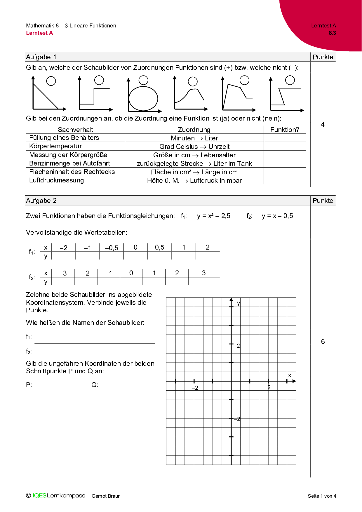 8.3 Lineare Funktionen – Lerntest A