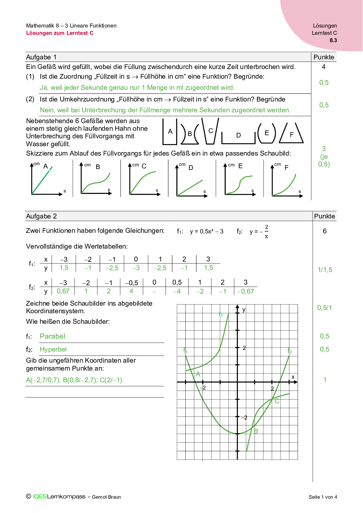 8.3 Lineare Funktionen – Lösungen zum Aufgabenpool für Abschlusstests