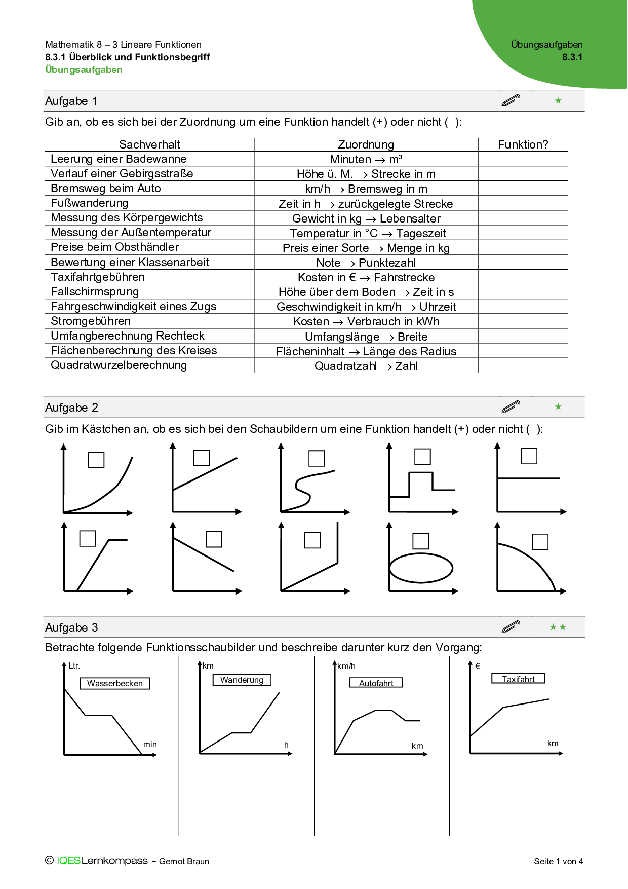 8.3.1 Überblick und Funktionsbegriff – Übungsaufgaben mit Lösungen