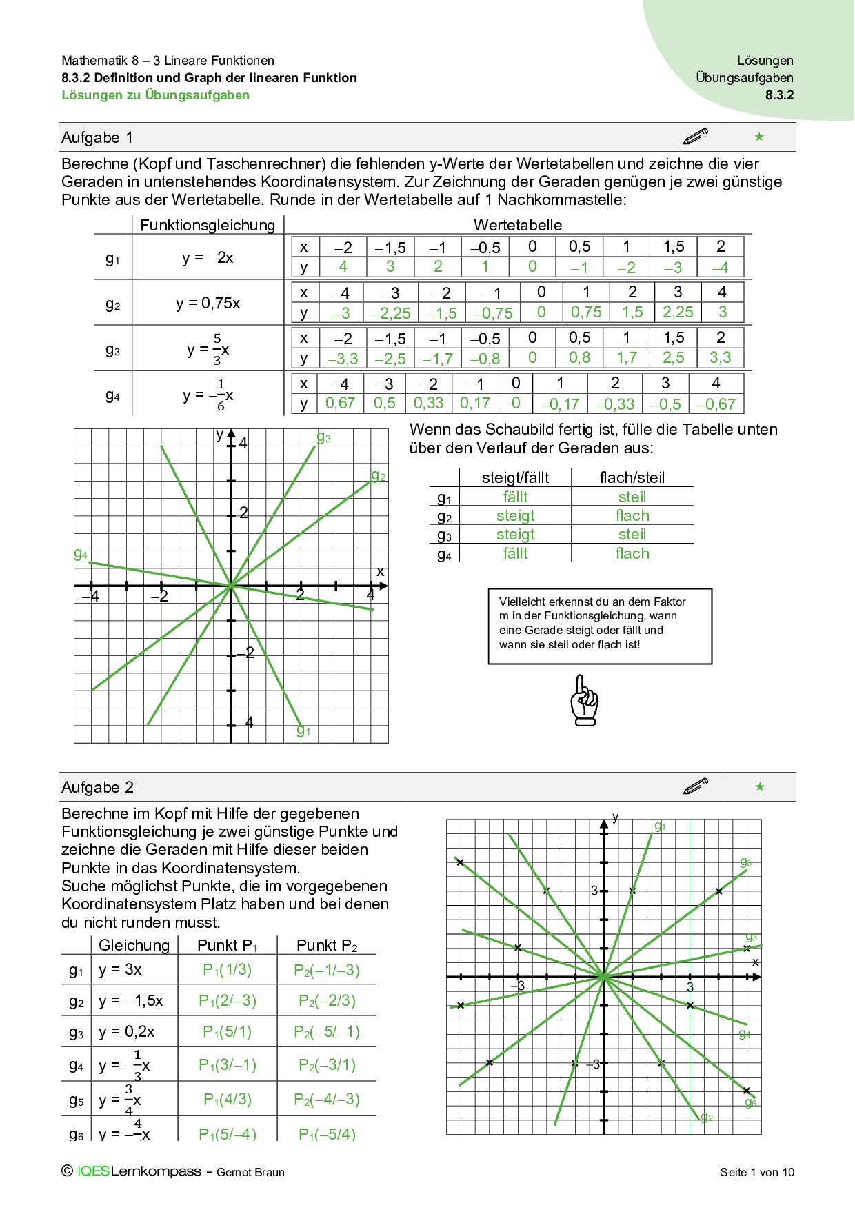 8.3.2 Definition und Graph der linearen Funktion – Übungsaufgaben mit Lösungen