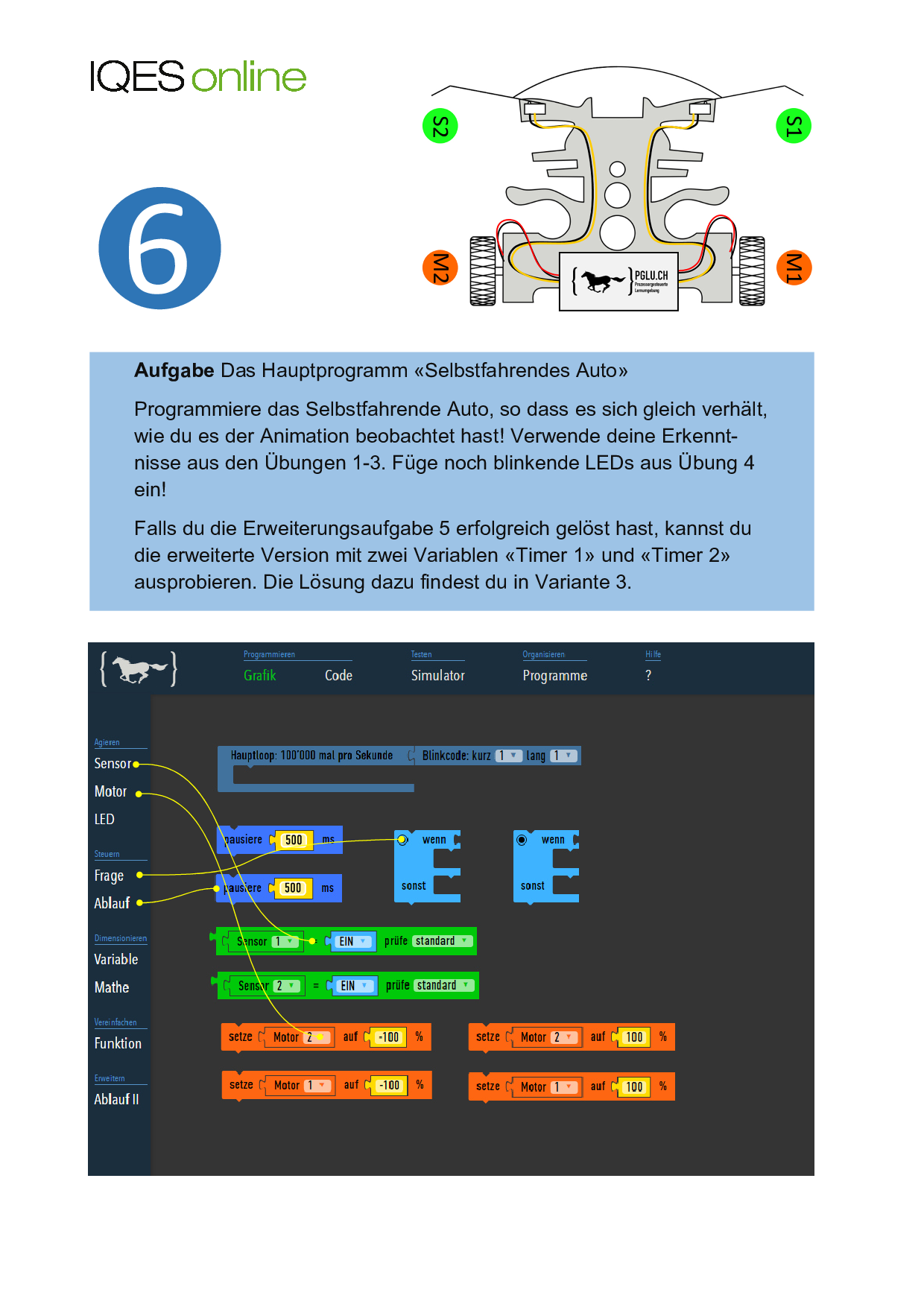 Hier finden Sie drei Varianten zu den Arbeitsblättern 1 bis 3 zum Projekt «Selbstfahrendes Auto».