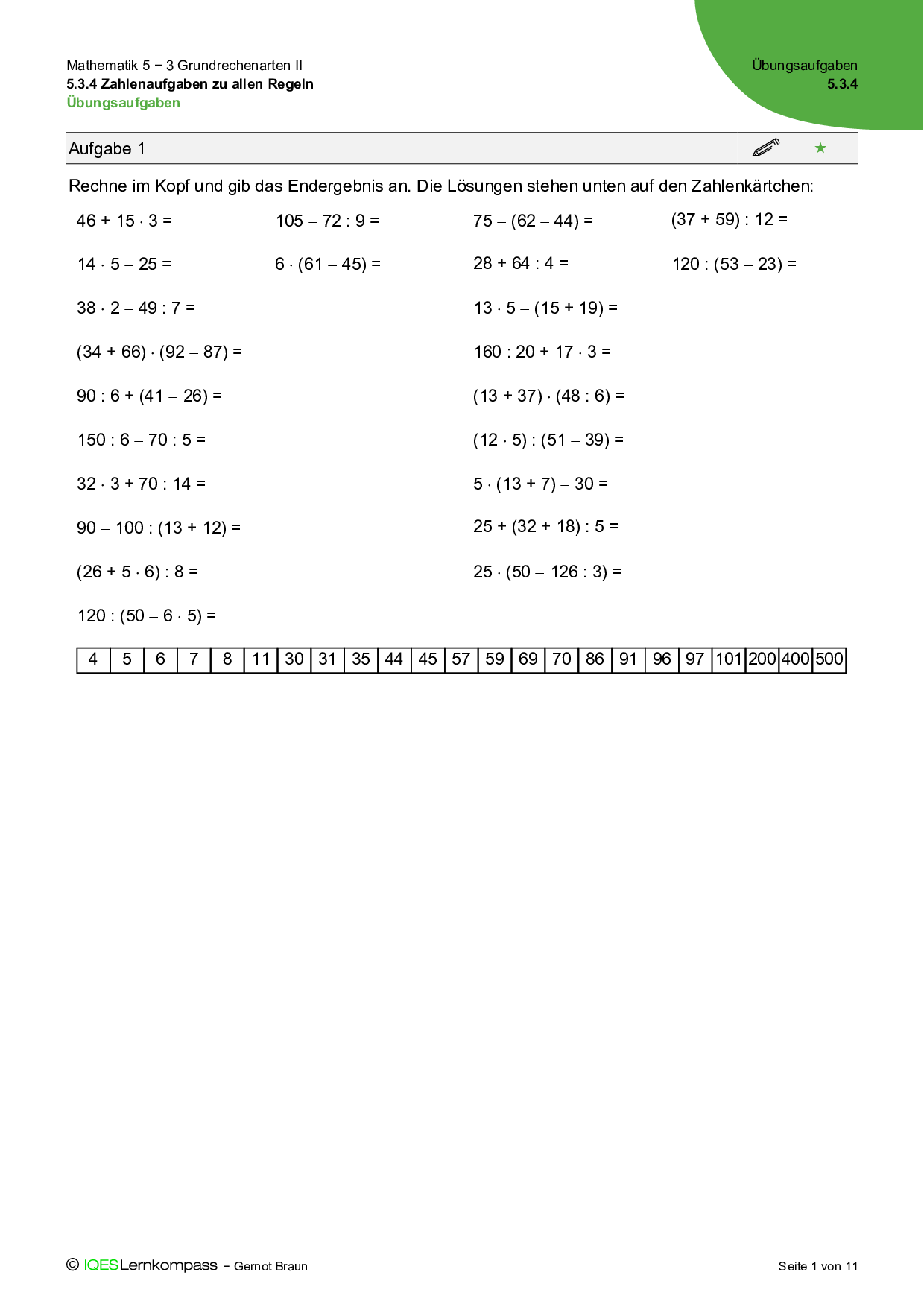 5.3.4 Zahlenaufgaben zu allen Regeln – Übungsaufgaben