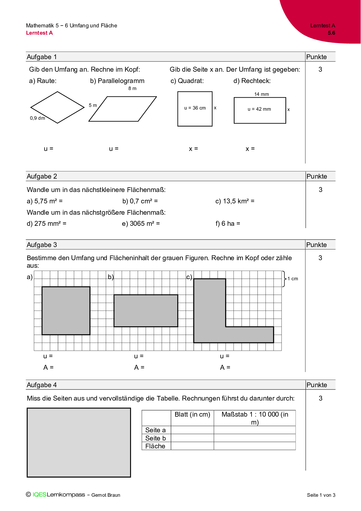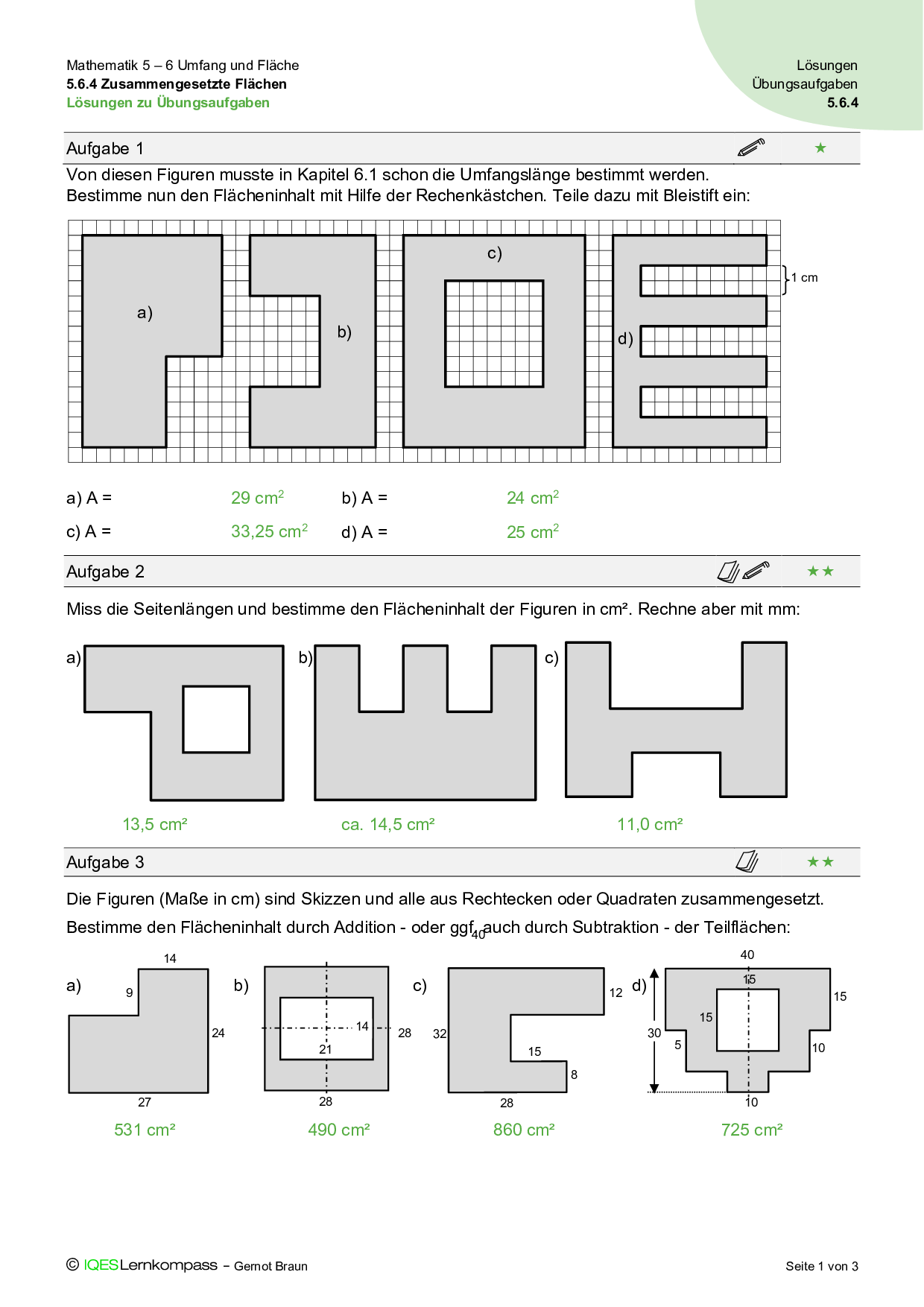5.6.4 Berechnung zusammengesetzter Figuren – Übungsaufgaben mit Lösungen