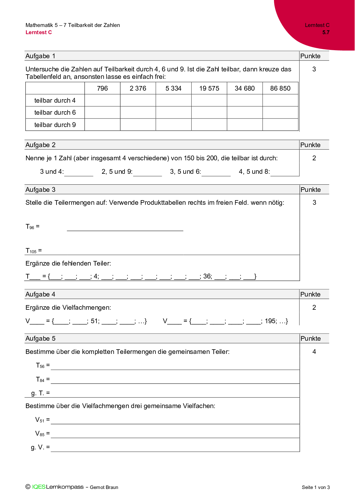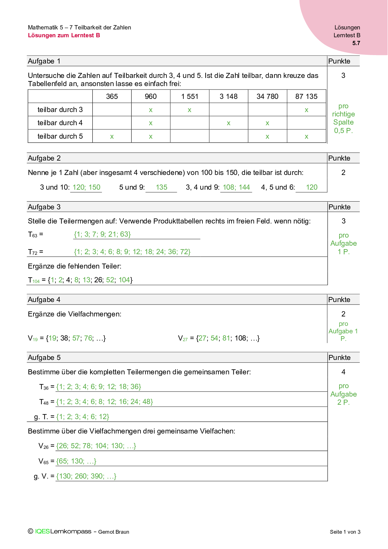 5.7 Teilbarkeit – Lösungen zum Lerntest B