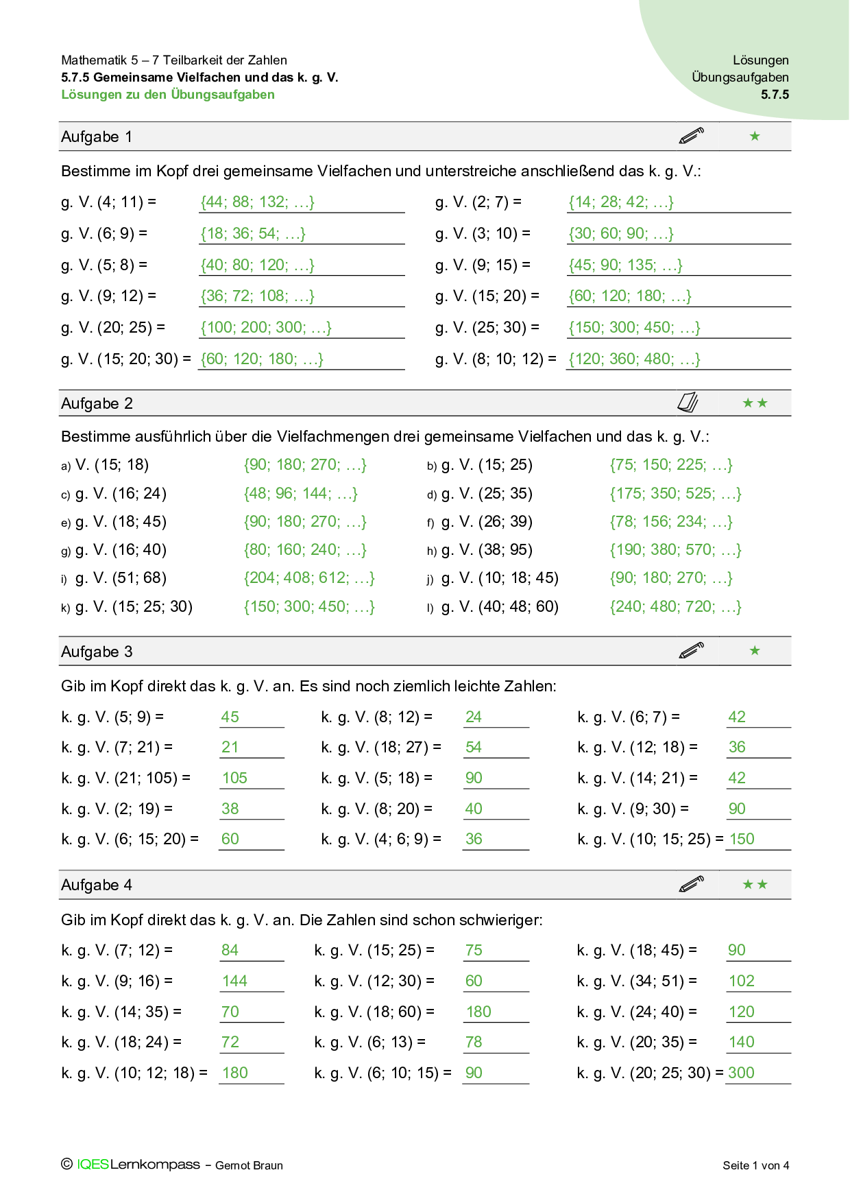 5.7.5 Gemeinsam Vielfachen und das k.g.V. – Übungsaufgaben mit Lösungen