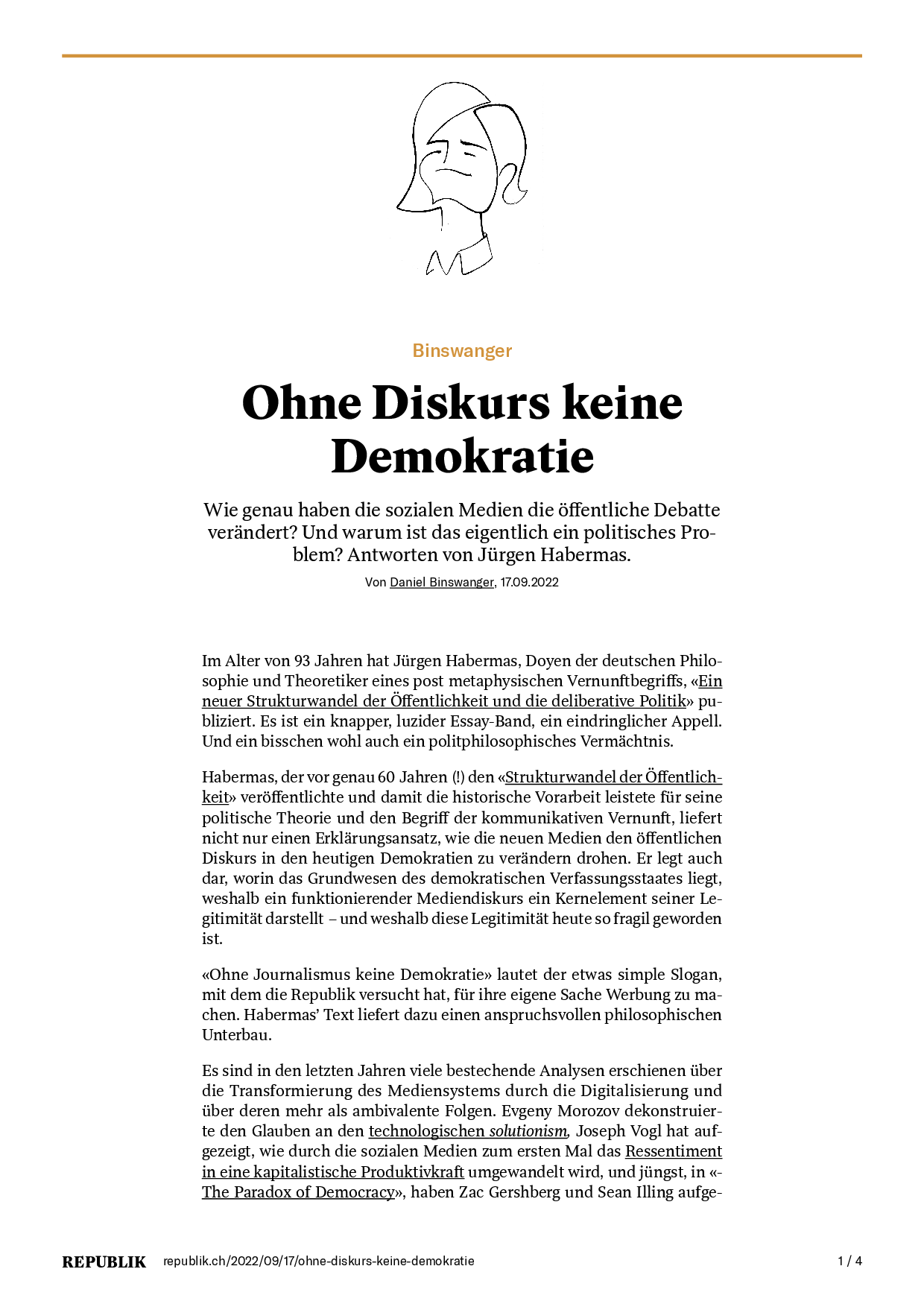 Artikel veröffentlicht im Tages-Anzeiger am 30. August 2022
