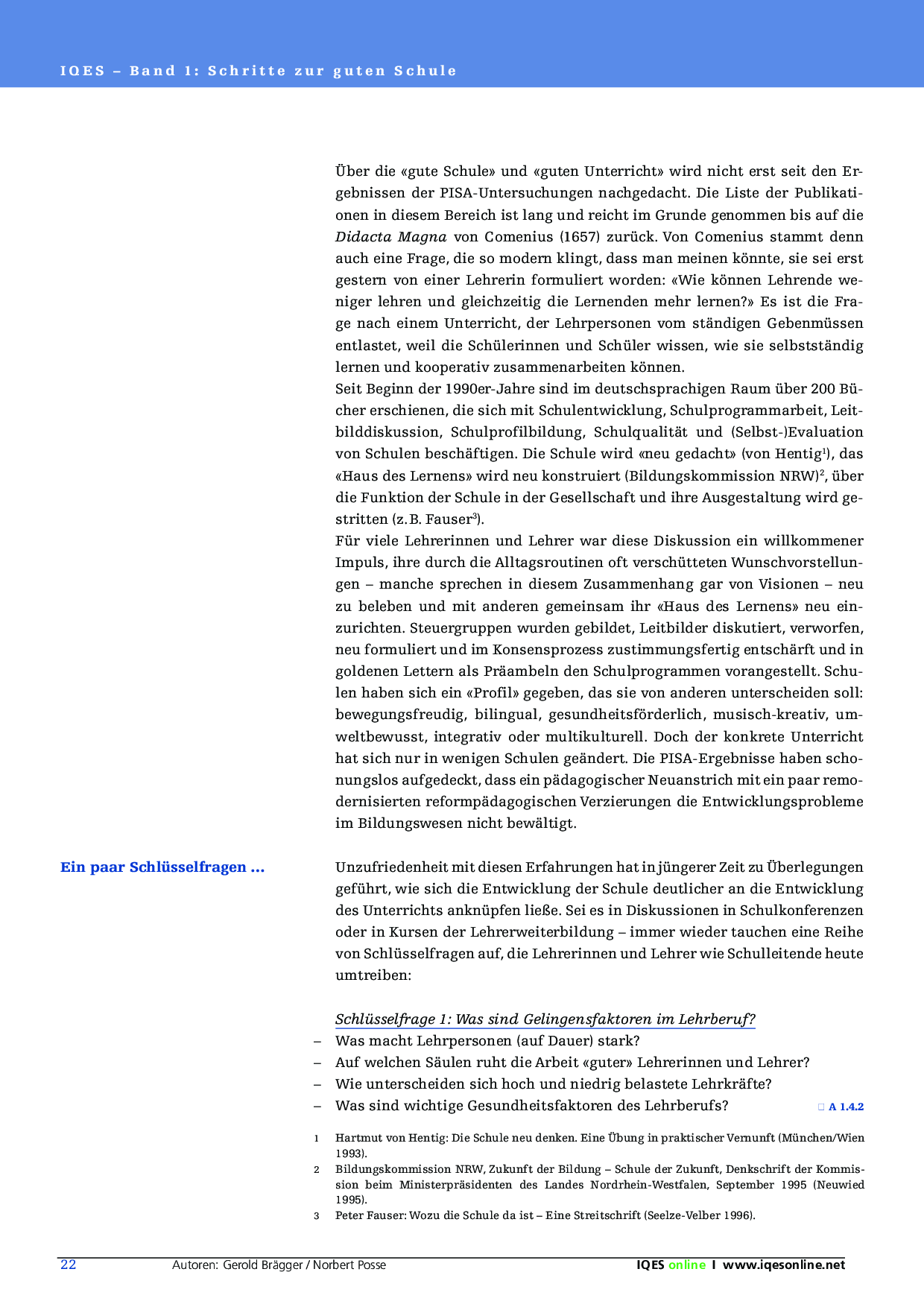 Herkunft: Gerold Brägger, Norbert Posse: Instrumente für die Qualitätsentwicklung und Evaluation in Schulen (IQES). hep verlag, 2007. ISBN 9783039053483