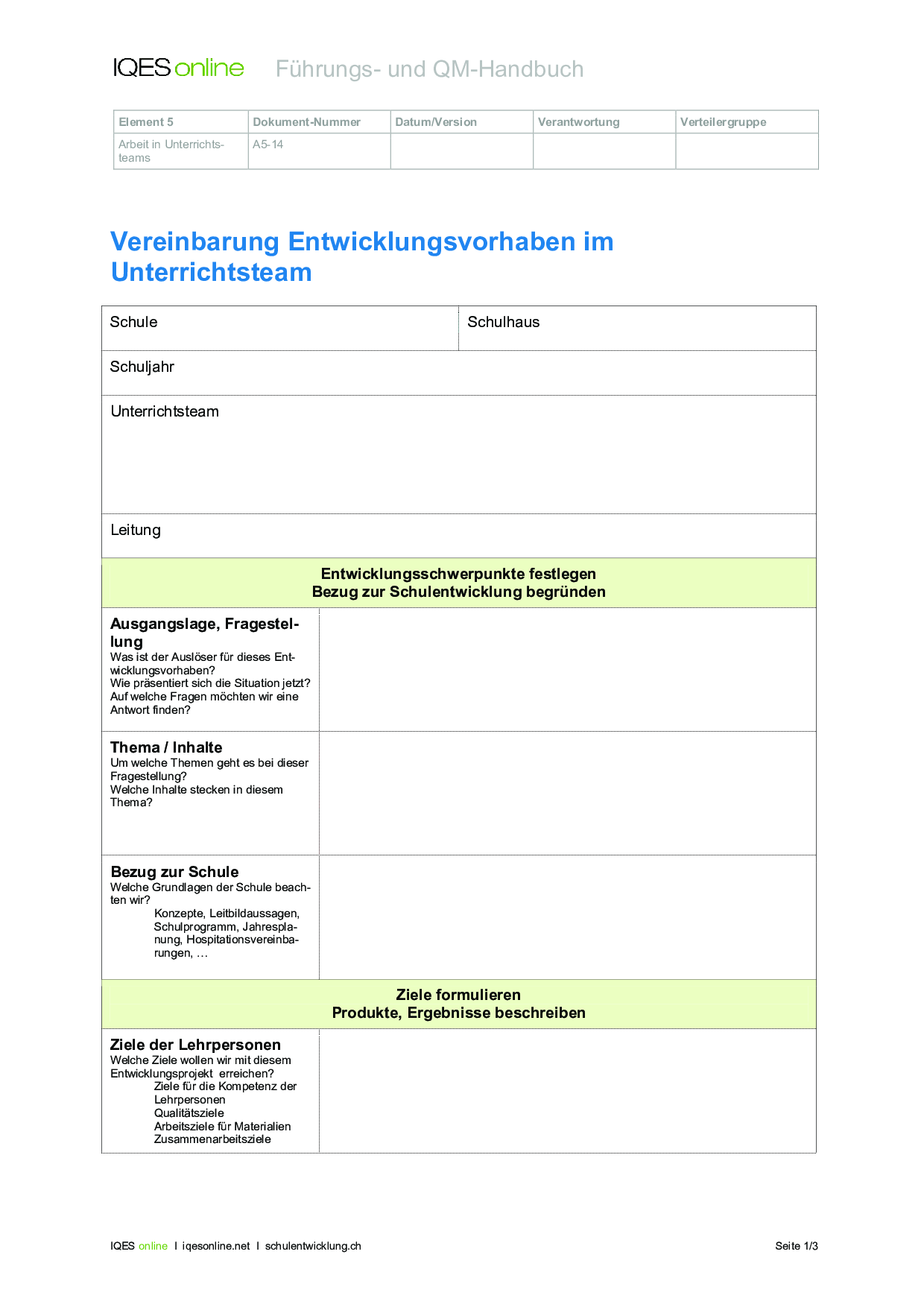 A5-14 Vereinbarung Entwicklungsvorhaben Unterrichtsteam