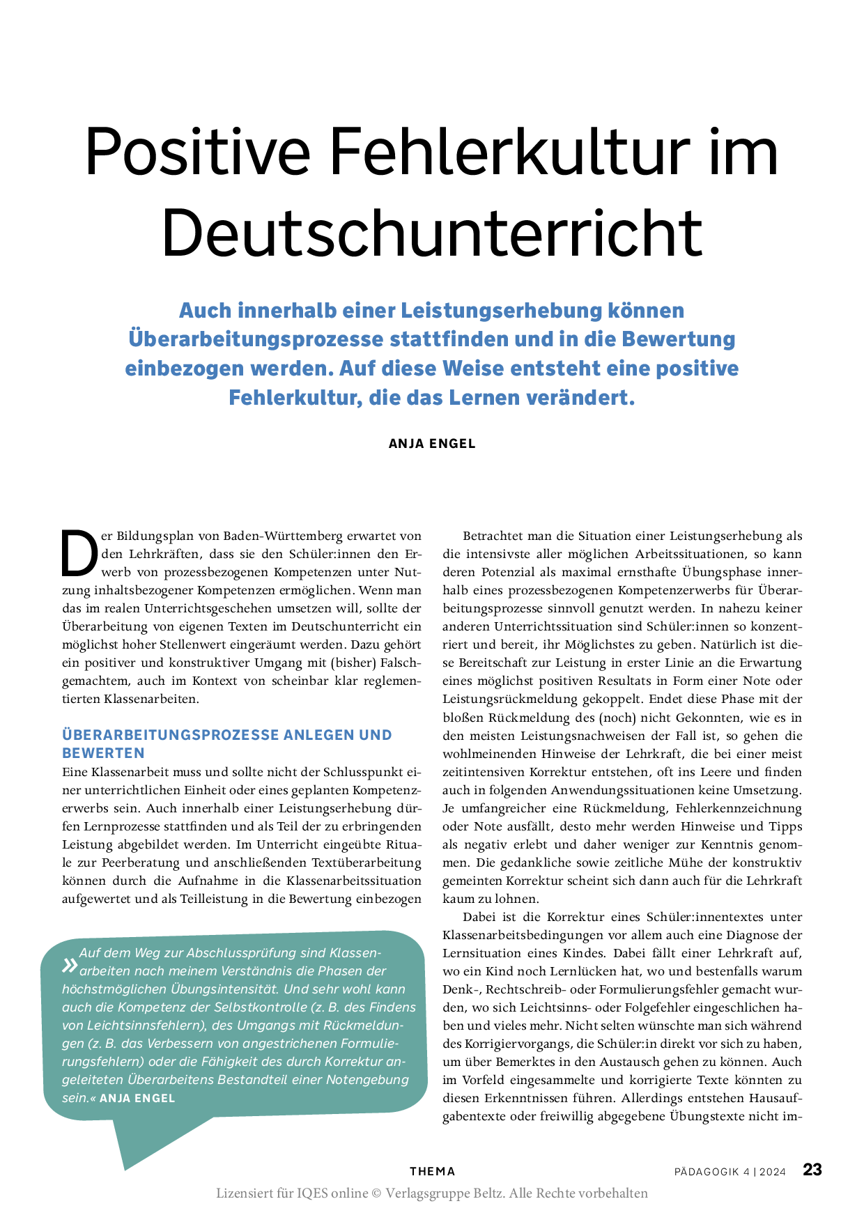 Herkunft: PÄDAGOGIK 4/24, Lizensiert für IQES online © Verlagsgruppe Beltz.