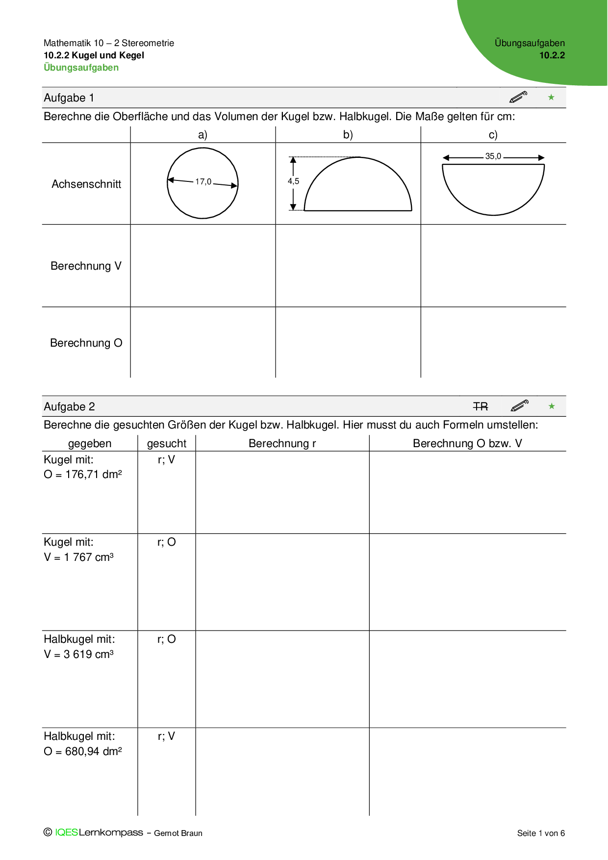 10.2.2 Kugel und Kegel Übungsaufgaben