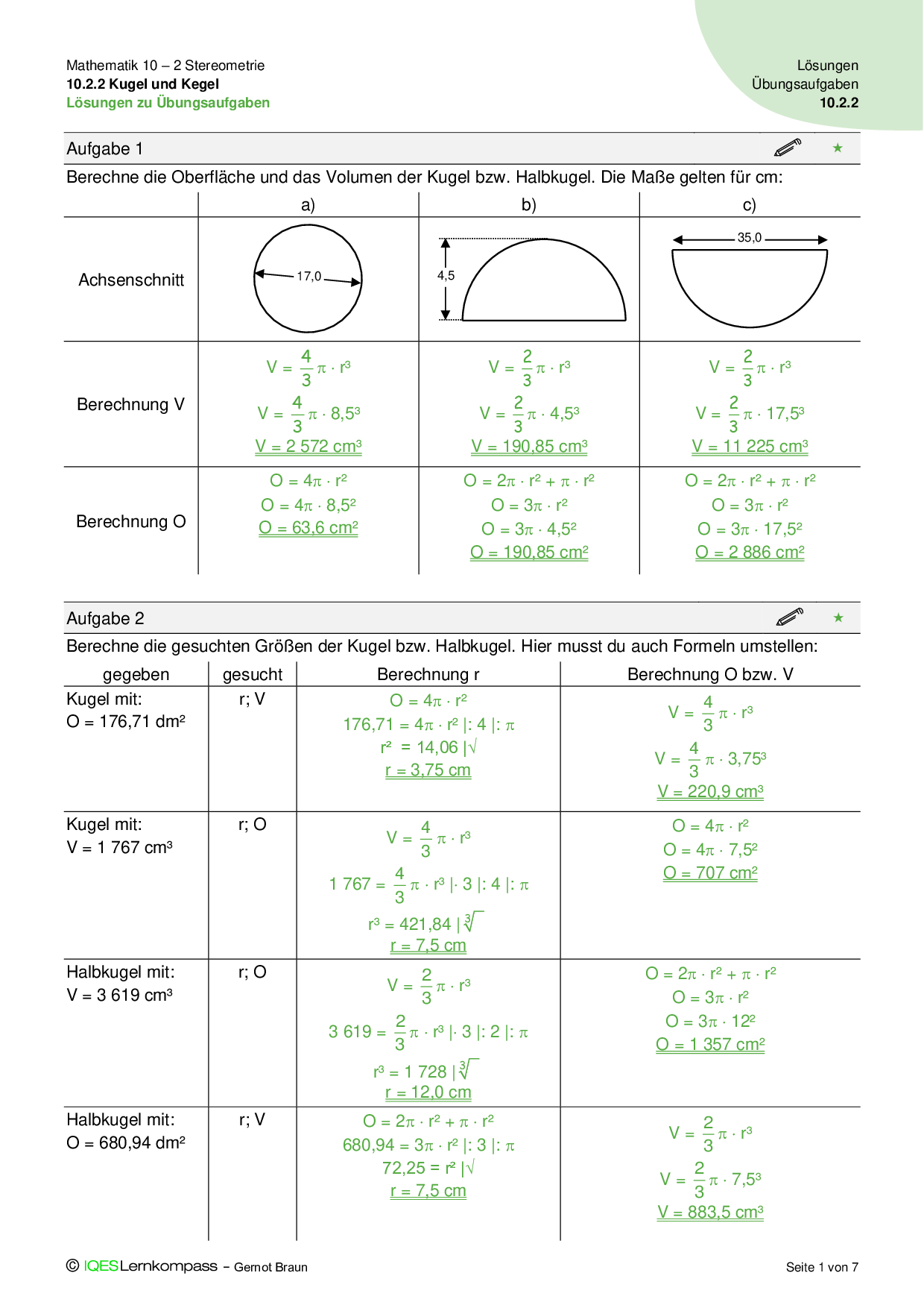 10.2.2 Kugel und Kegel Lösungen zu Übungsaufgaben