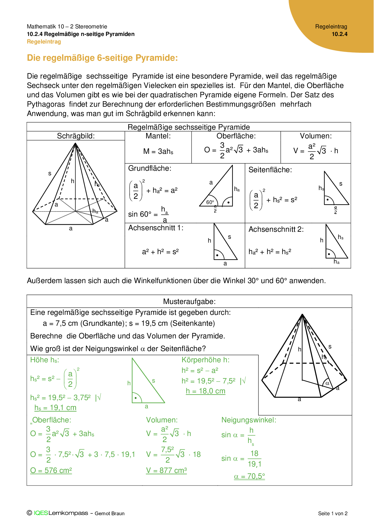 10.2.4 Regelmässige n-seitige Pyramiden Übungsaufgaben