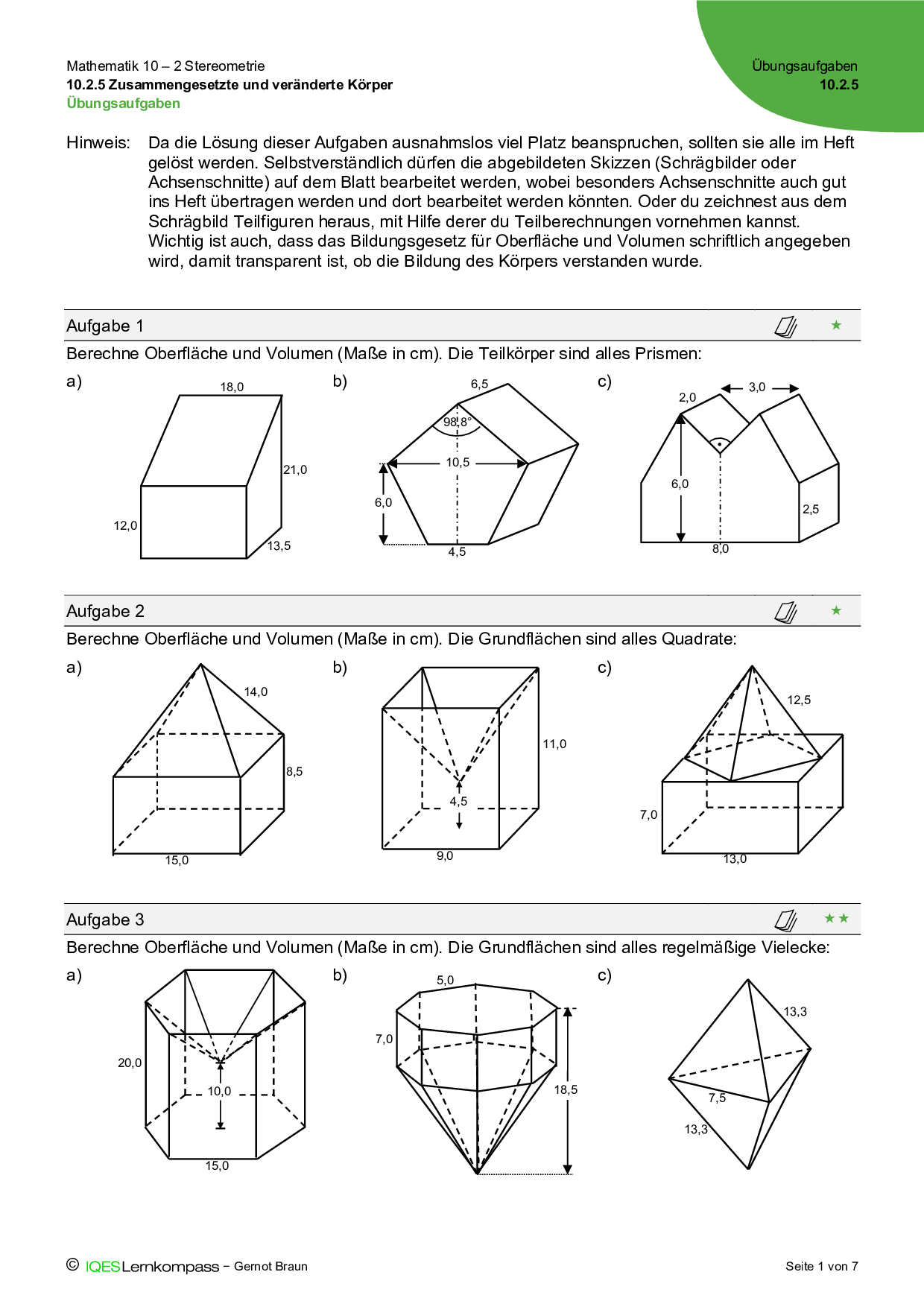10.2.5 Zusammengesetzte und veränderte Körper Übungsaufgaben