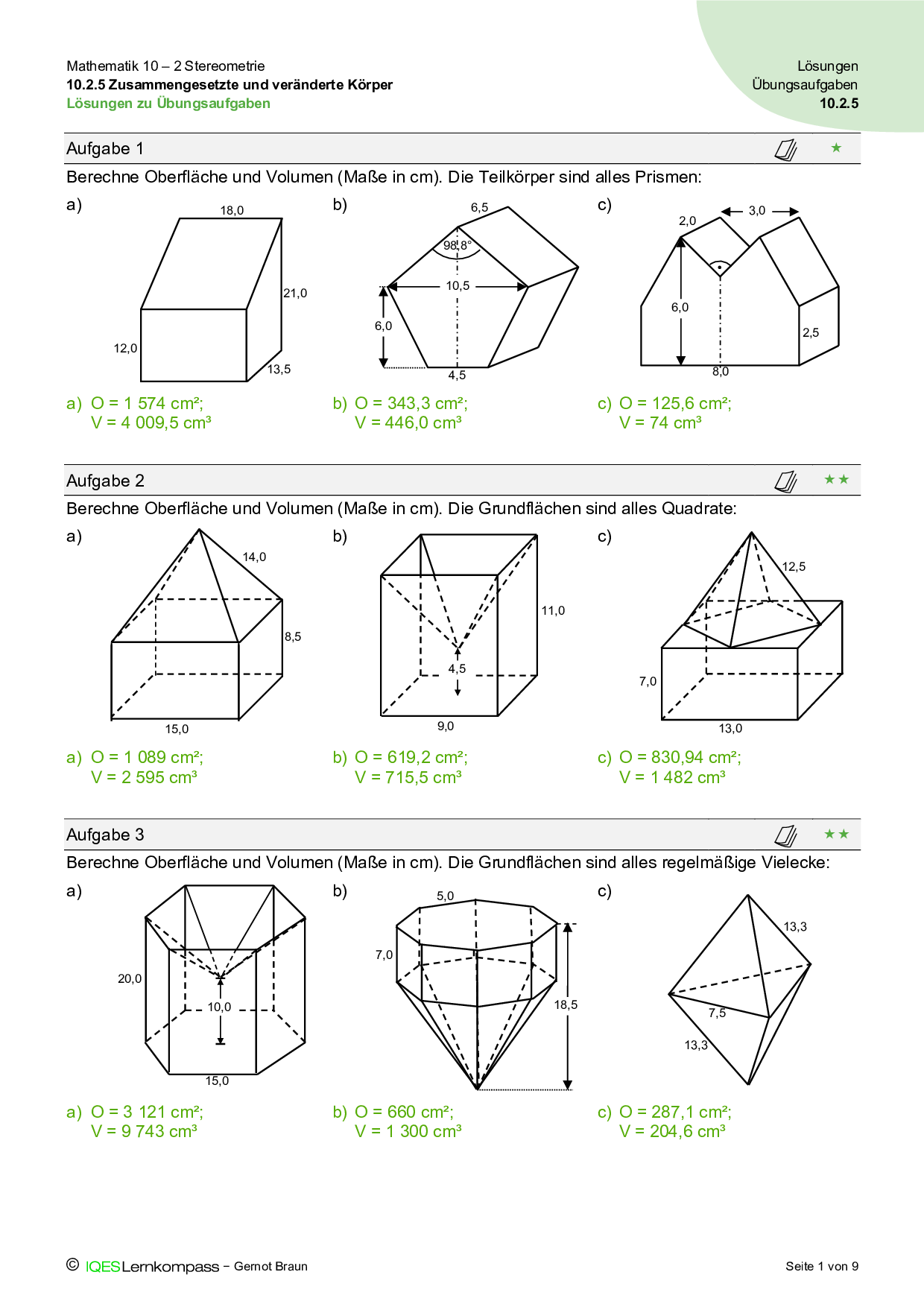 10.2.5 Zusammengesetzte und veränderte Körper Lösungen zu Übungsaufgaben