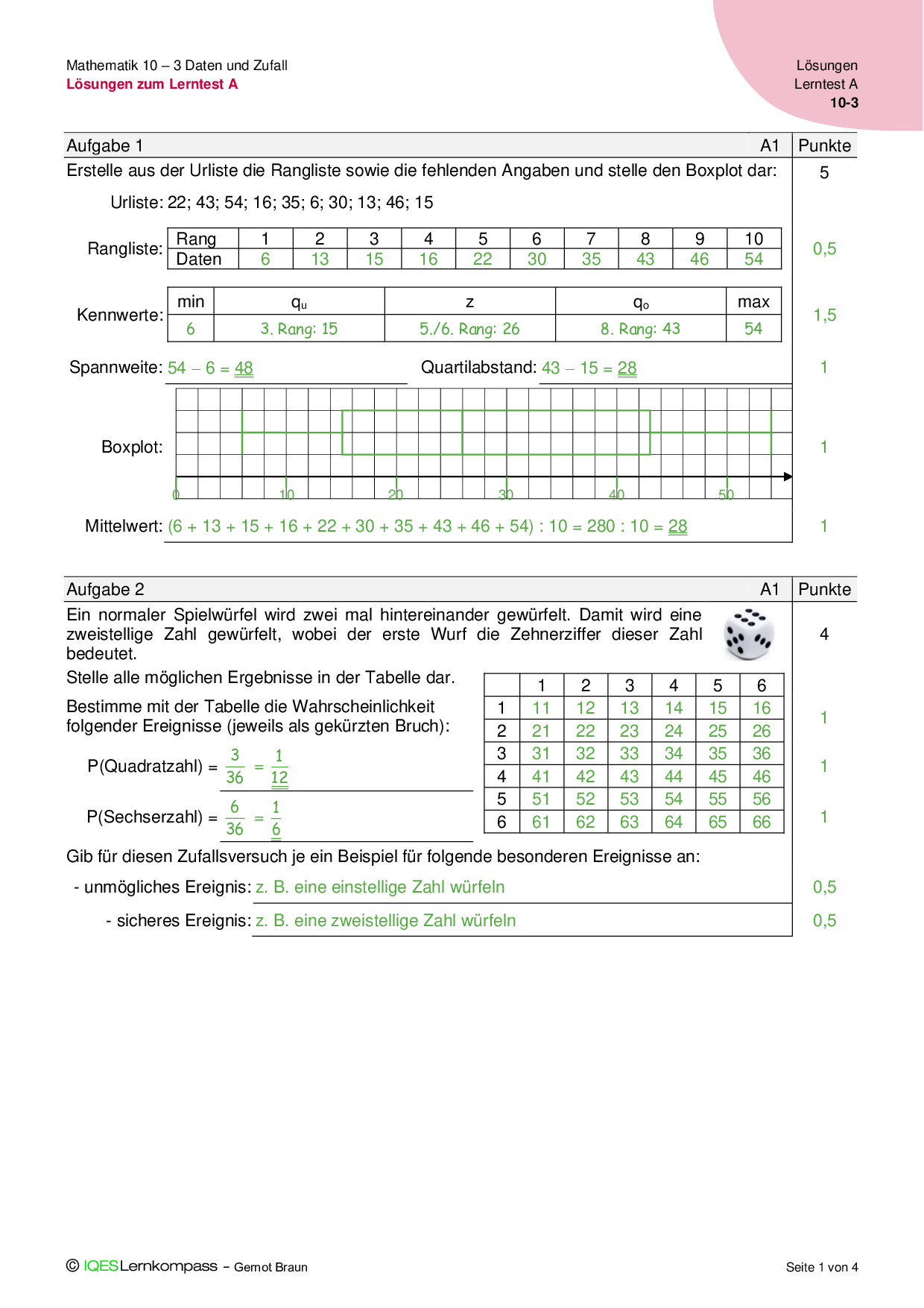 10.3 Daten und Zufall Lösungen zum Aufgabenpool für Abschlusstests