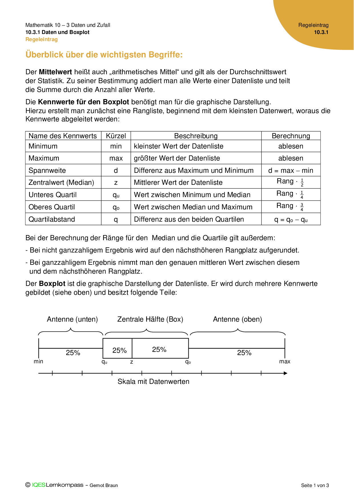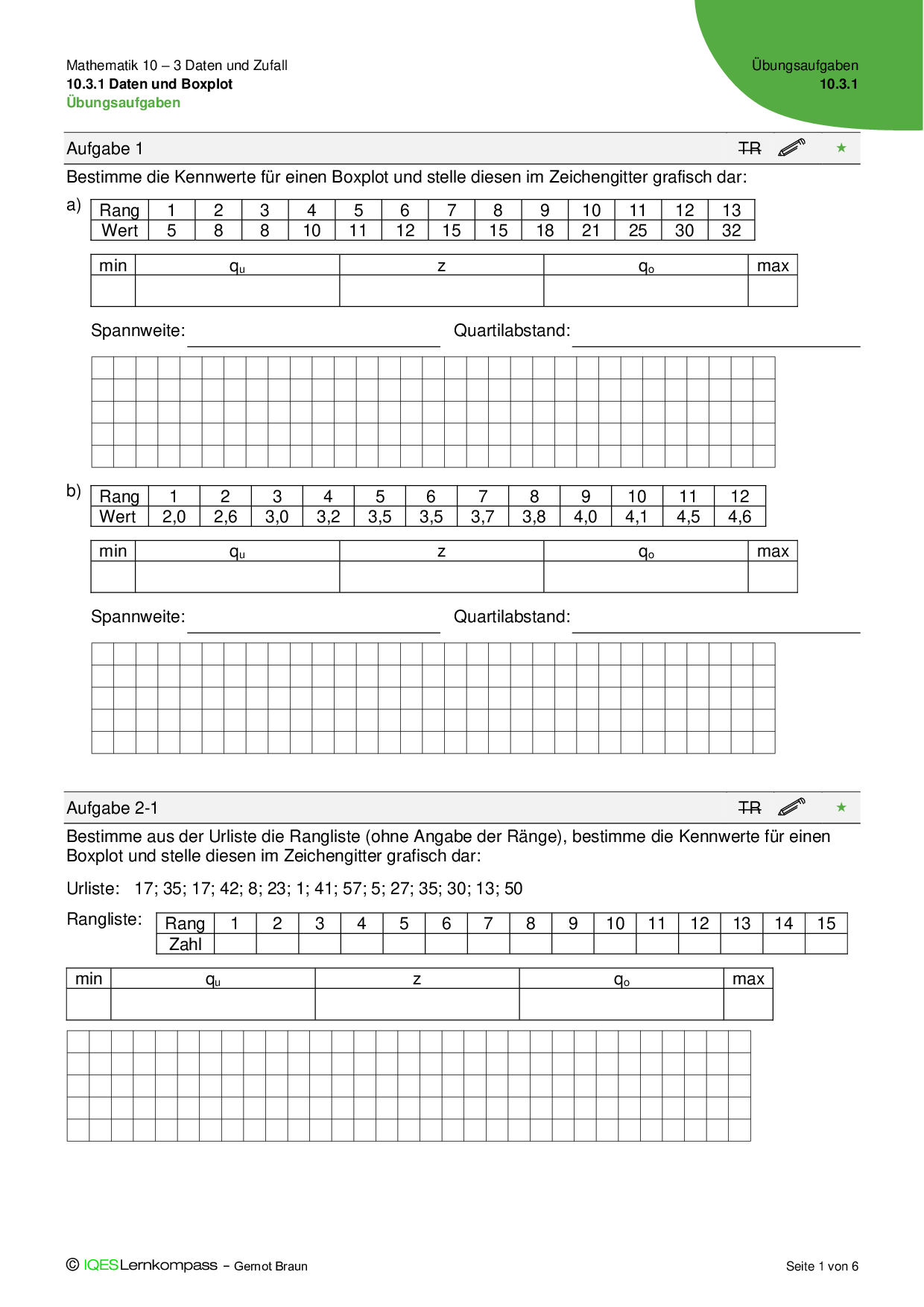 10.3.1 Daten und Boxplot Übungsaufgaben