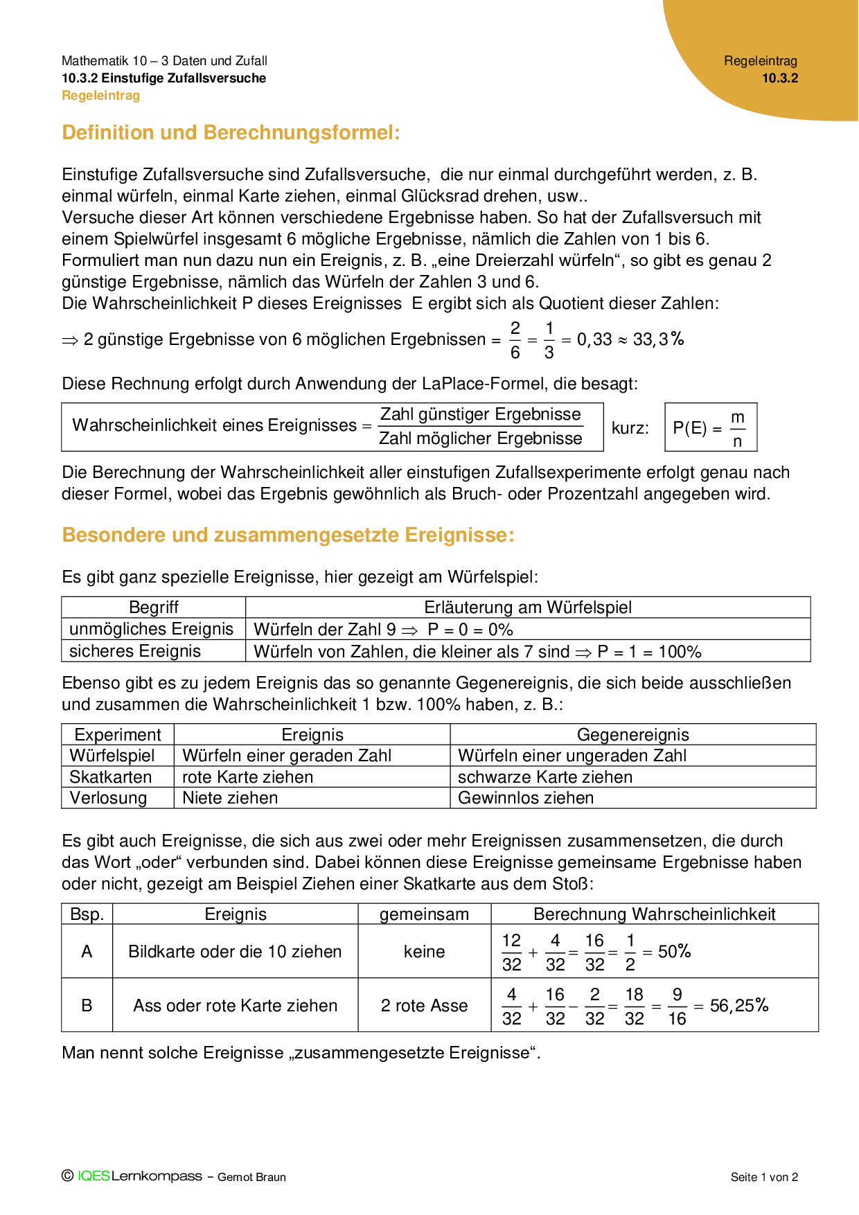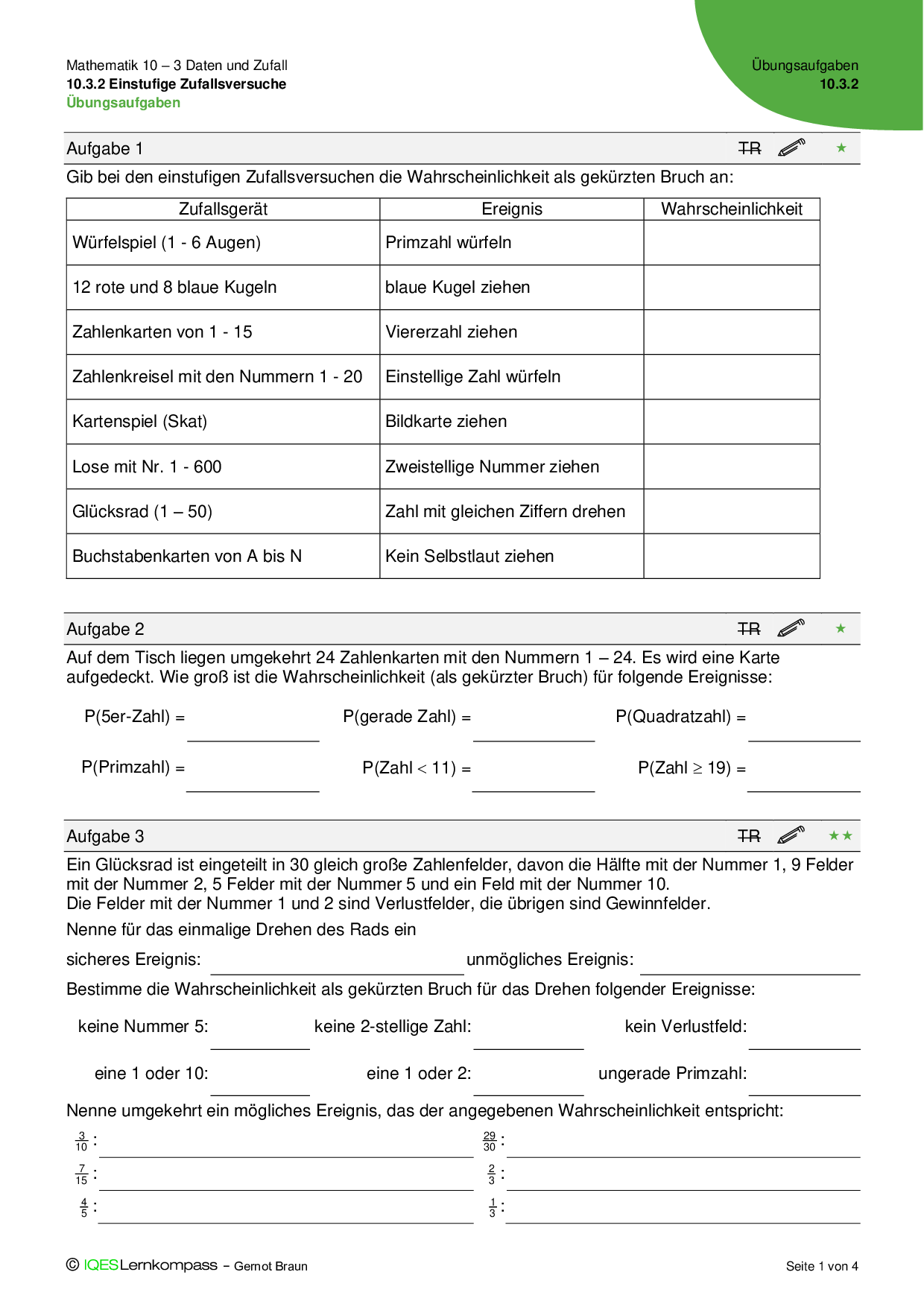 10.3.2 Einstufige Zufallsversuche Übungsaufgaben