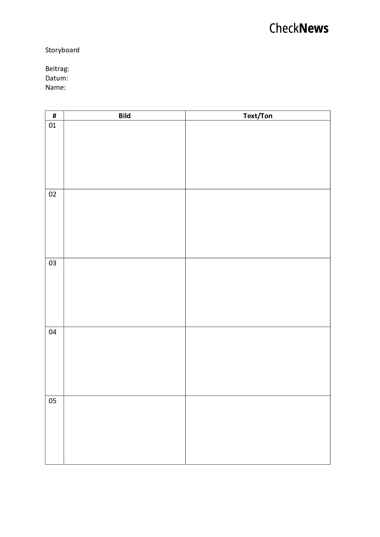 Vorlage 1 zum Aufzeichnen eines Ablaufs der Videostory.