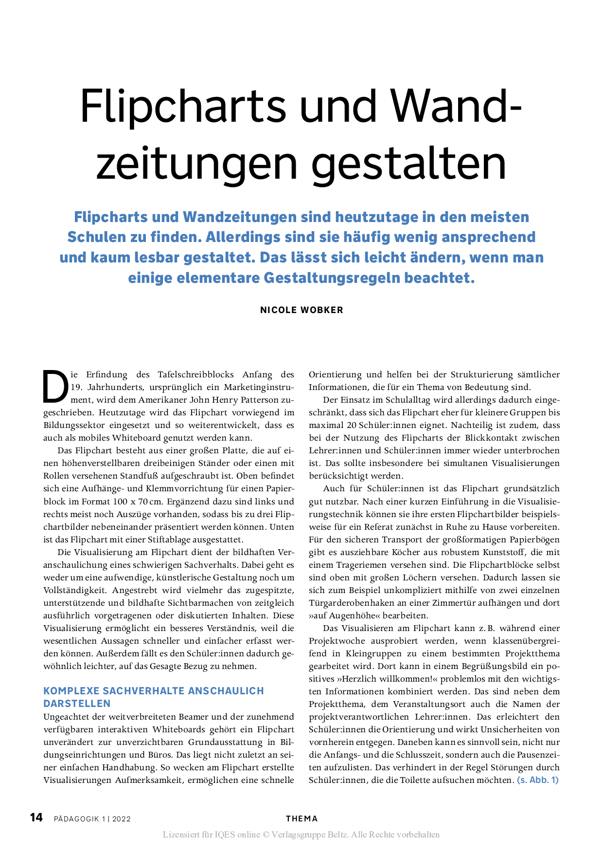 Flipcharts und Wandzeitungen sind heutzutage in den meisten Schulen zu finden. Allerdings sind sie häufig wenig ansprechend und kaum lesbar gestaltet. Das lässt sich leicht ändern, wenn man einige elementare Gestaltungsregeln beachtet.
