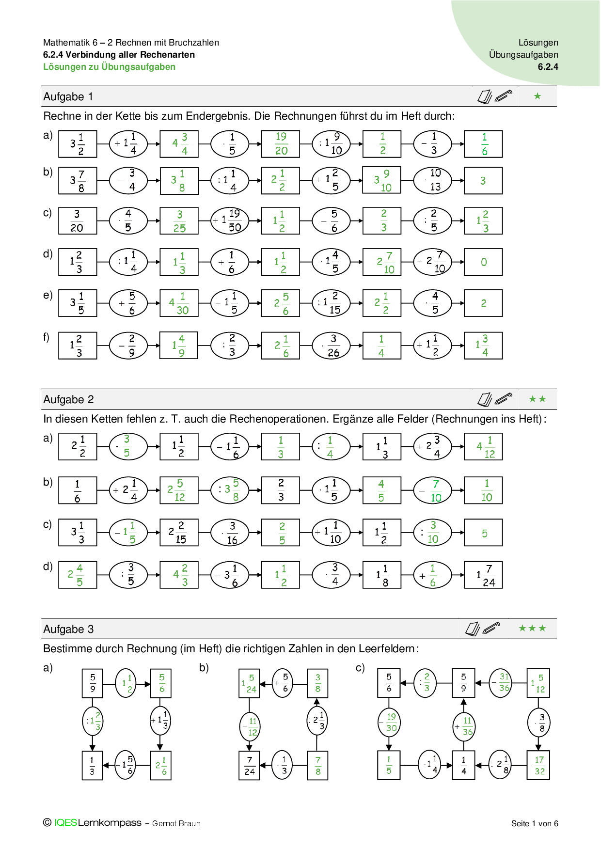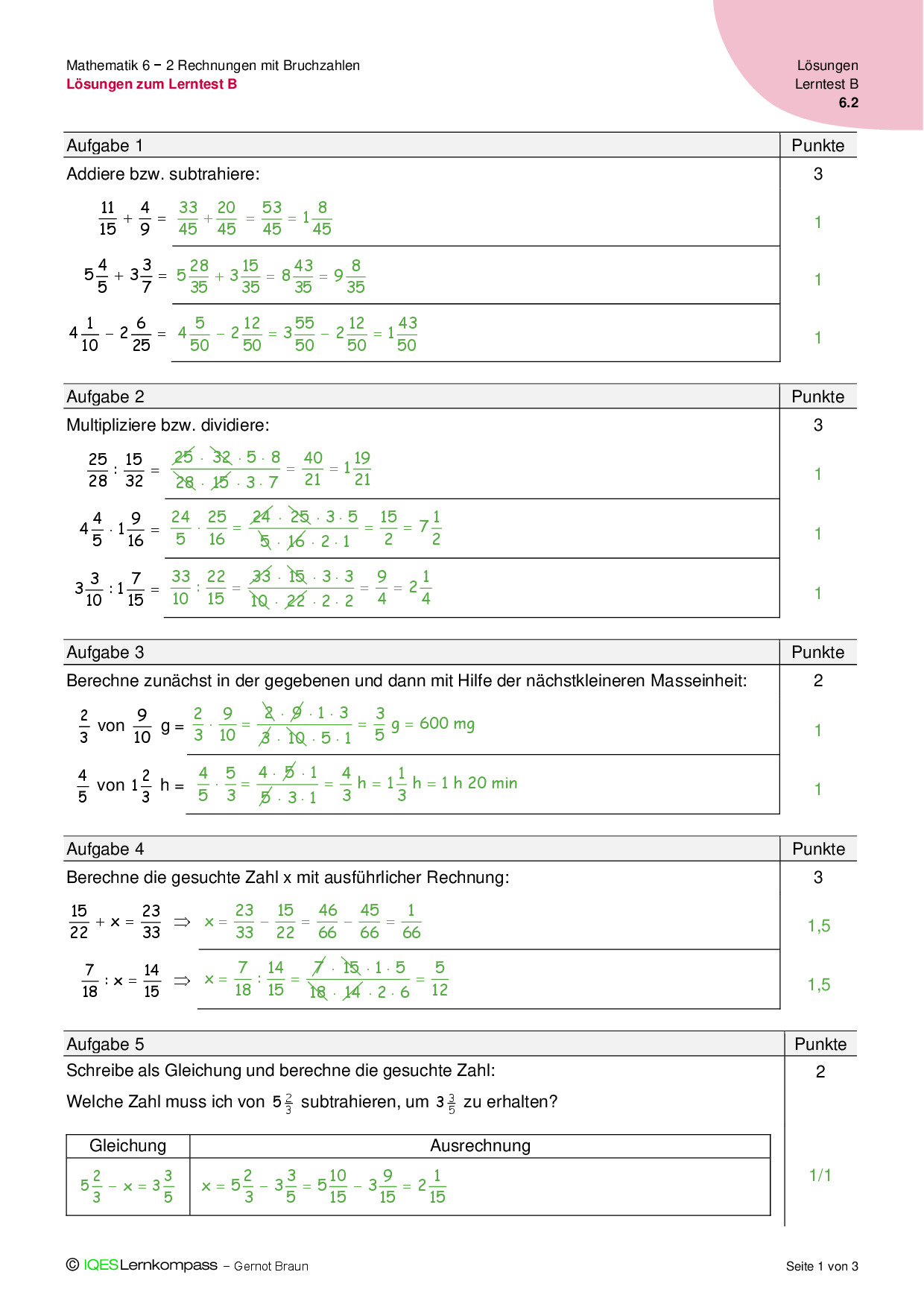 6.2 Rechnen mit Bruchzahlen – Lösungen zum Lerntest B