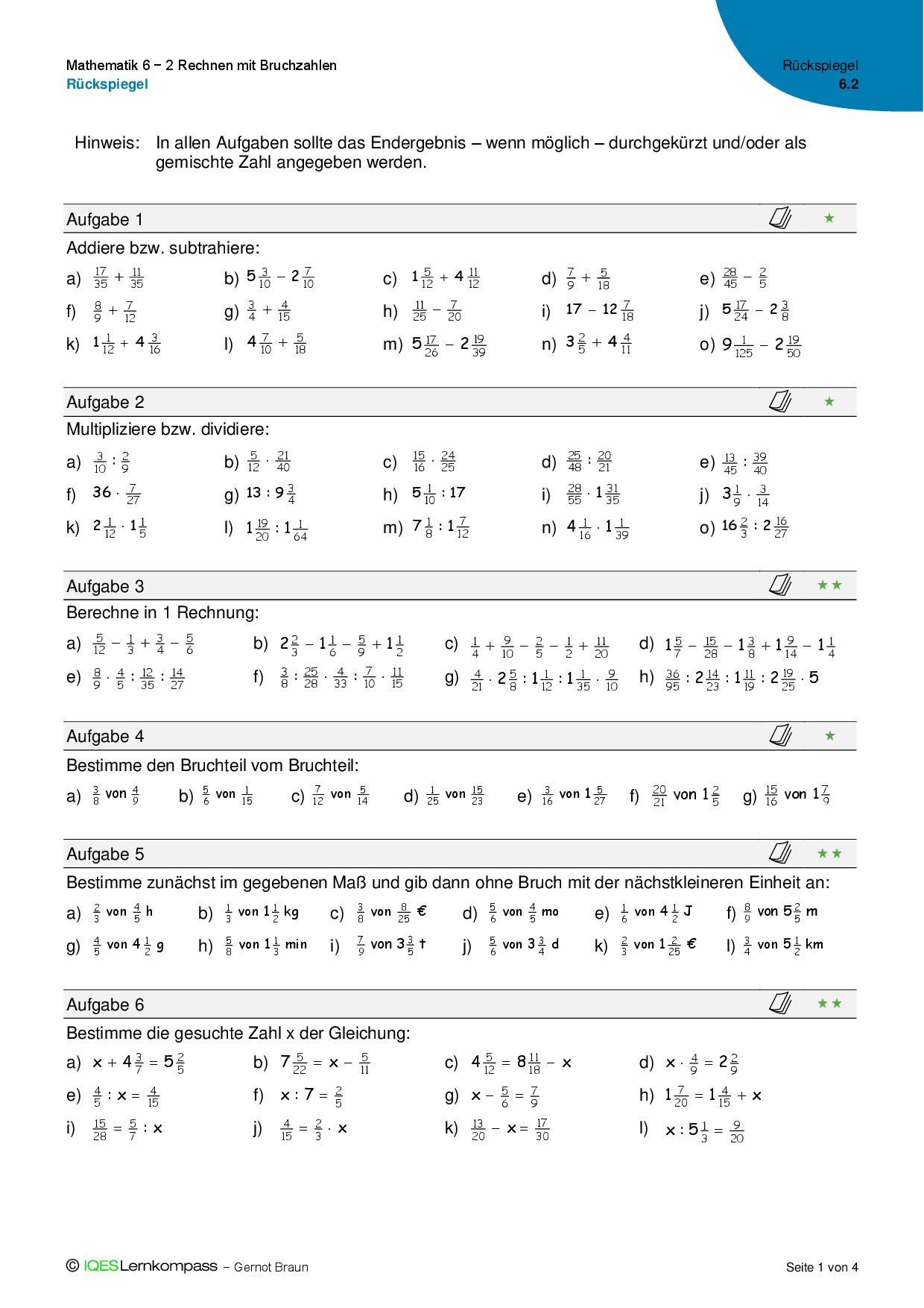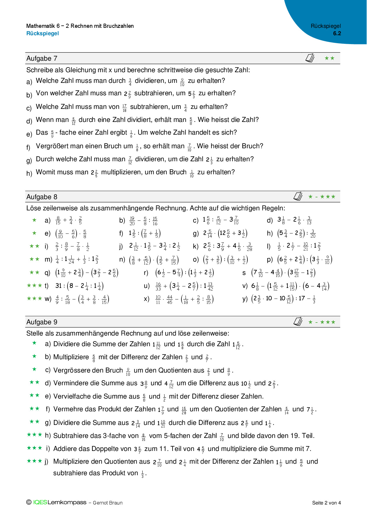 6.2 Rechnen mit Bruchzahlen – Rückspiegel