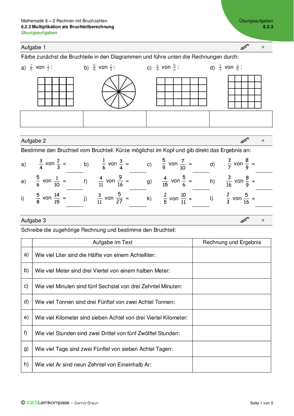 6.2.3 Multiplikation als Bruchteilberechnung – Übungsaufgaben mit Lösungen