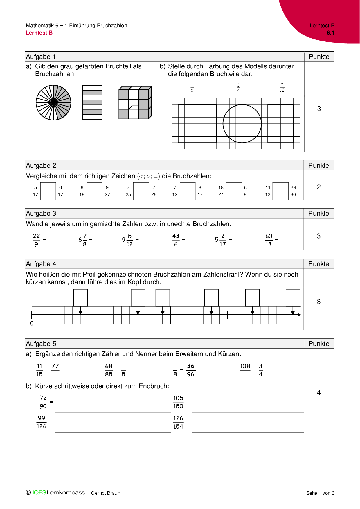 6.1 Einführung Bruchzahlen – Lerntest B
