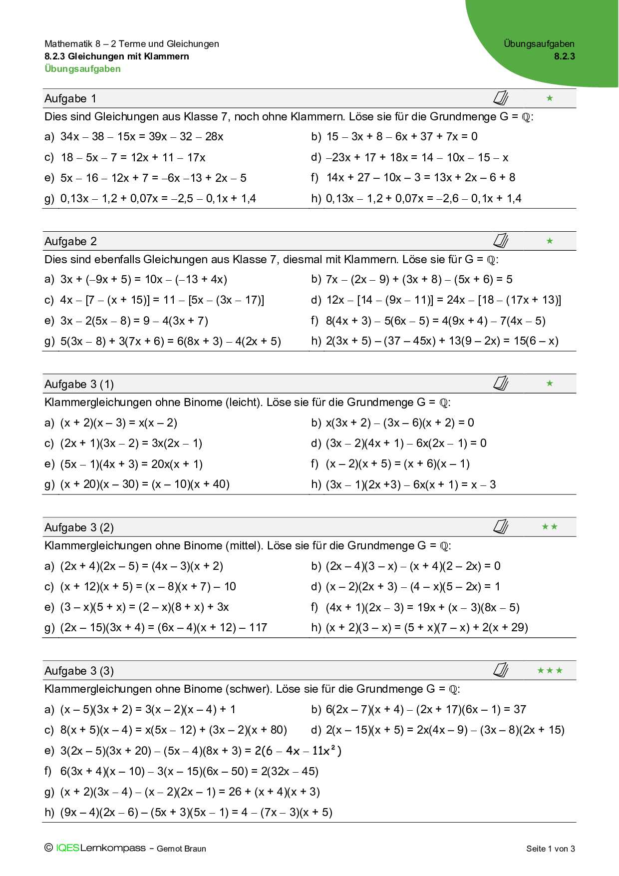 8.2.3 Gleichungen mit Klammern – Übungsaufgaben