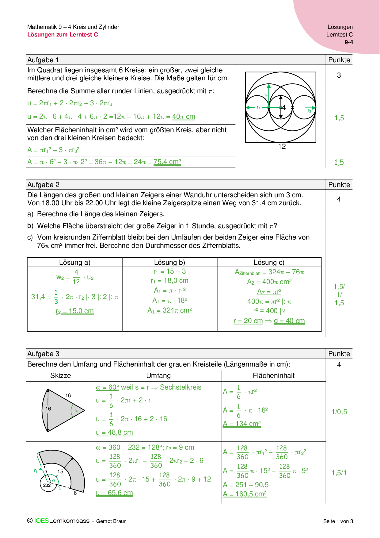 9.4 Kreis und Zylinder - Lösungen zum Lerntest C