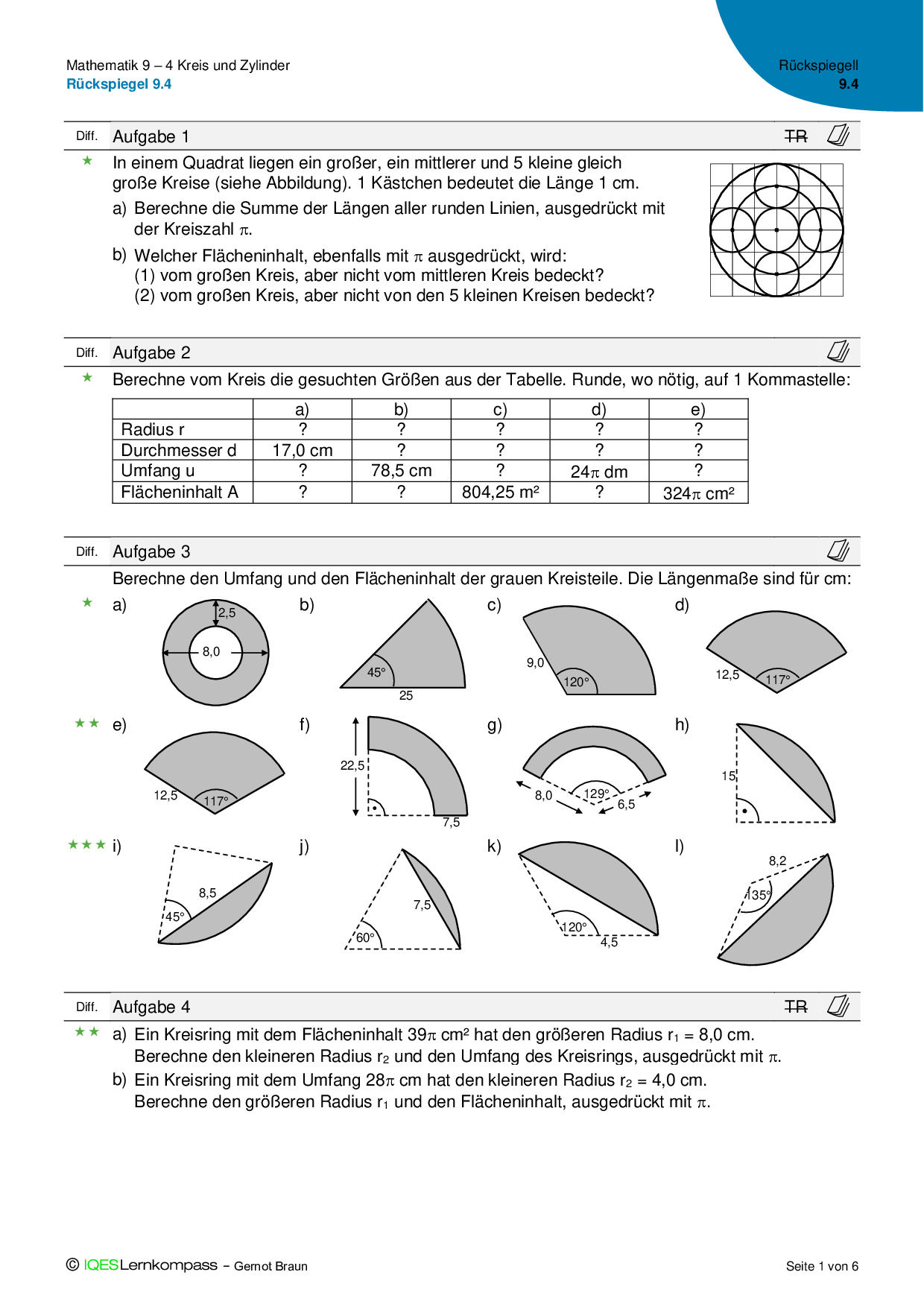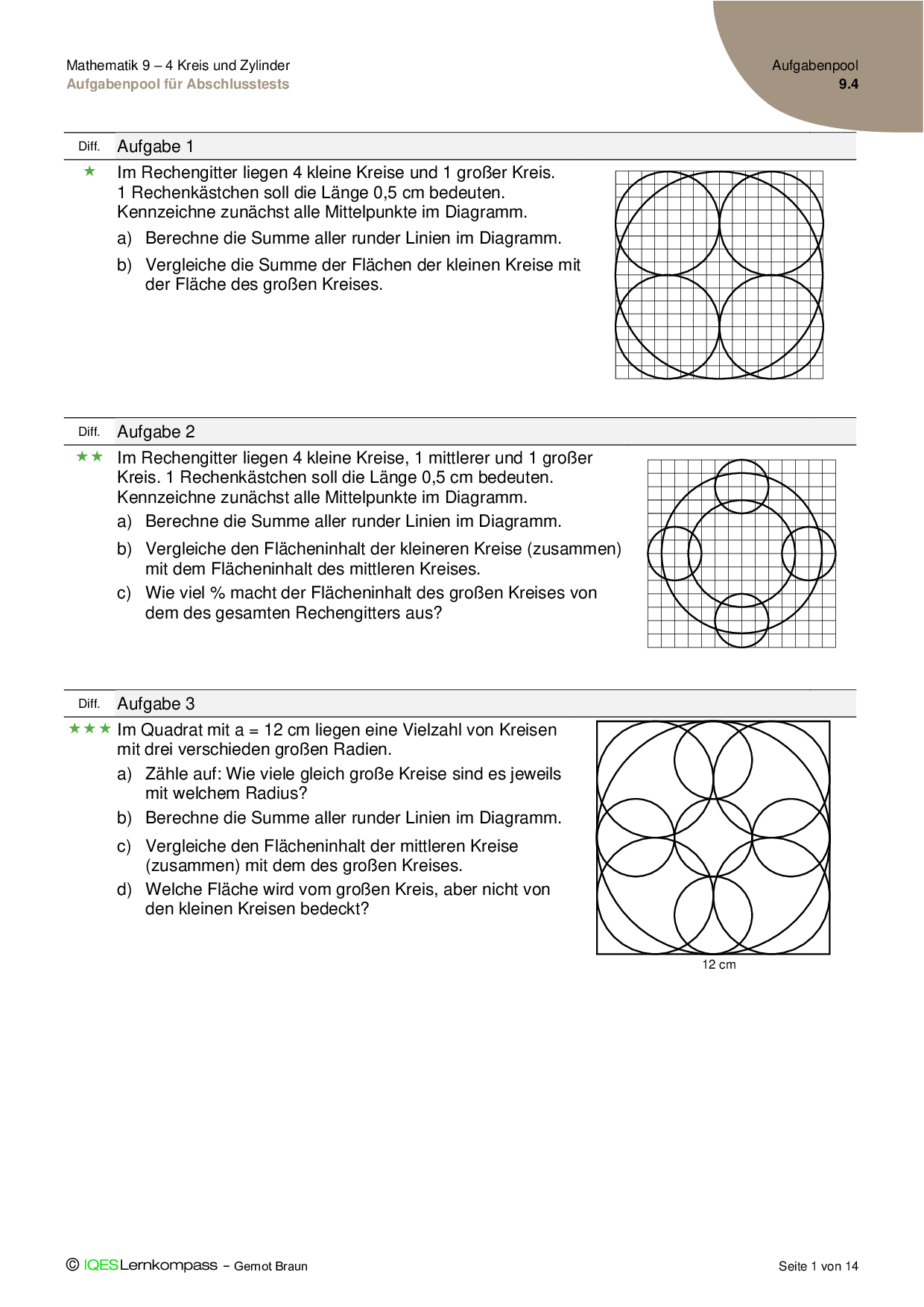 9.4 Kreis und Zylinder - Aufgabenpool für Abschlusstests