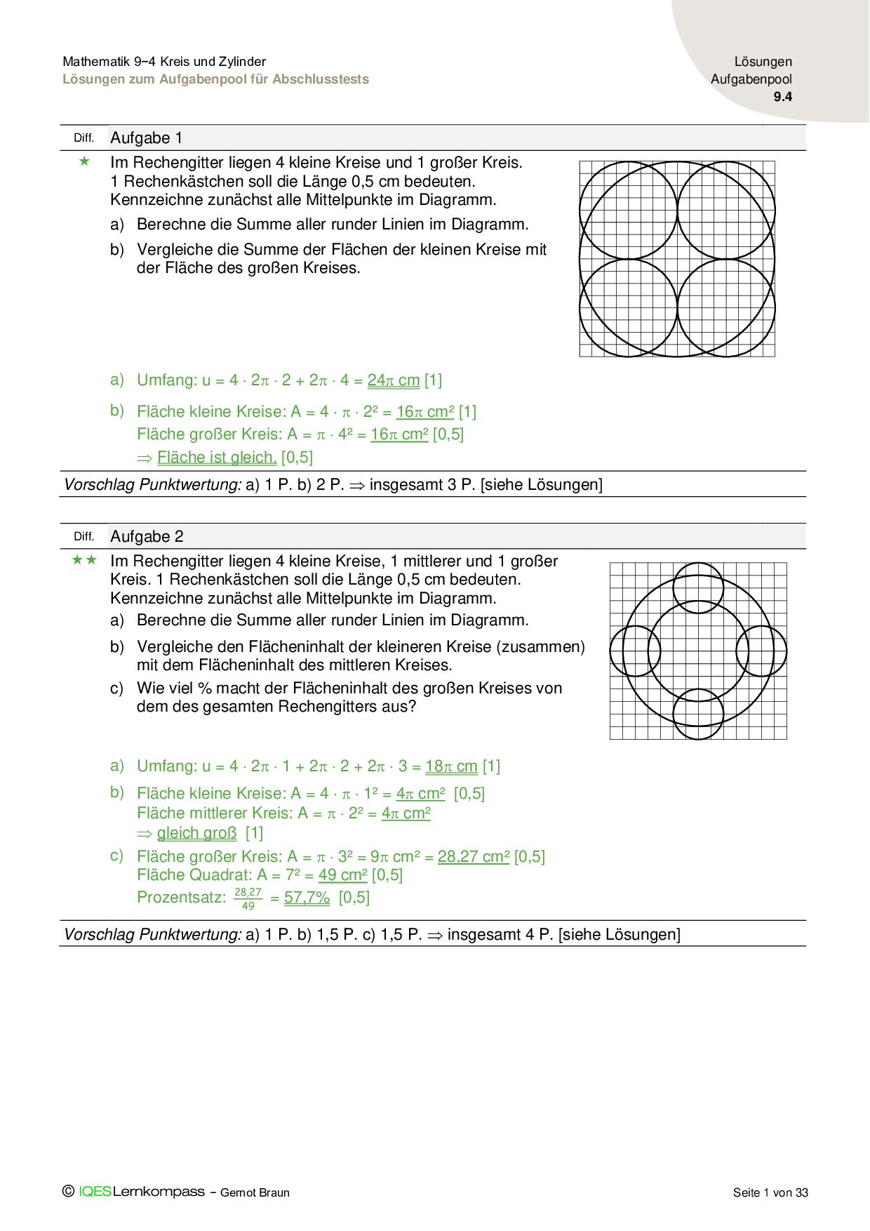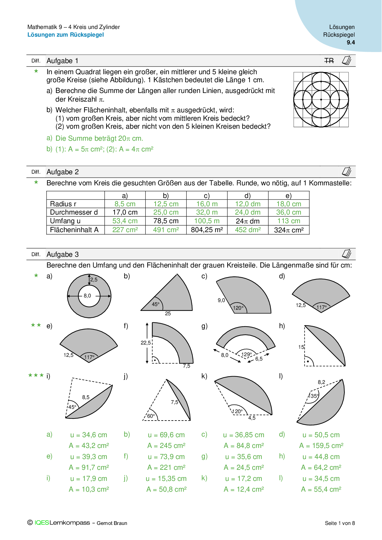 9.4 Kreis und Zylinder - Lösungen zum Aufgabenpool für Abschlusstests