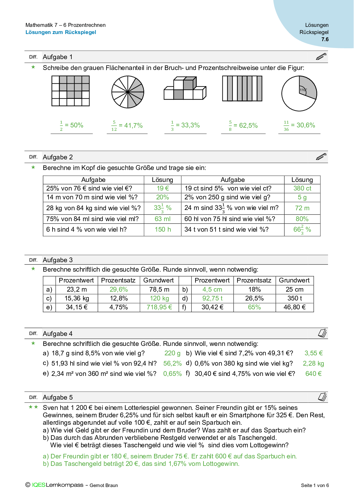 7.6 Prozentrechnen – Lösungen zum Rückspiegel
