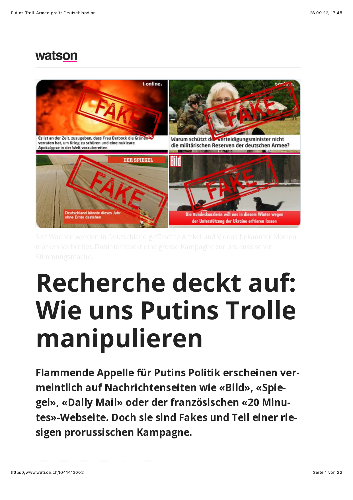 «Recherche deckt auf: Wie uns Putins Trolle manipulieren» (watson)