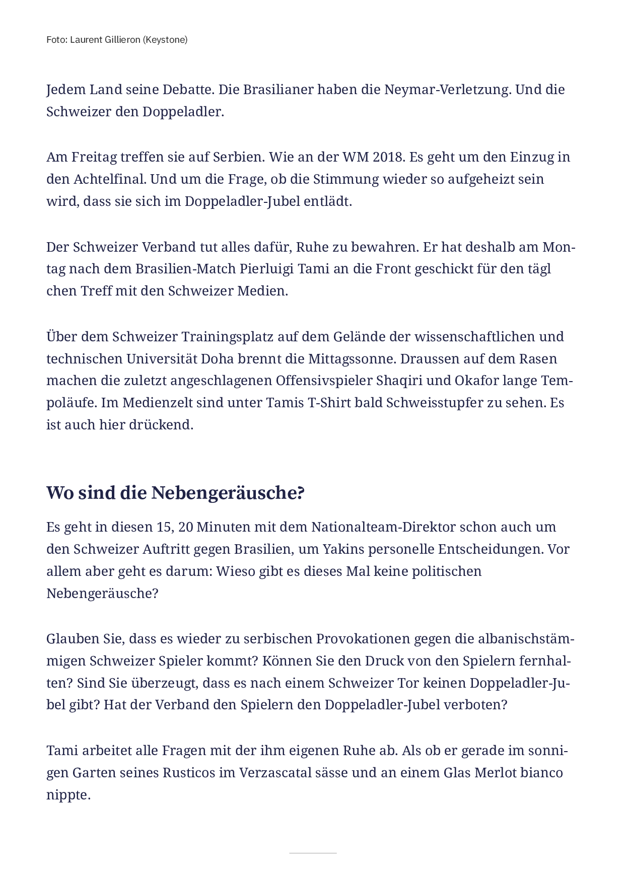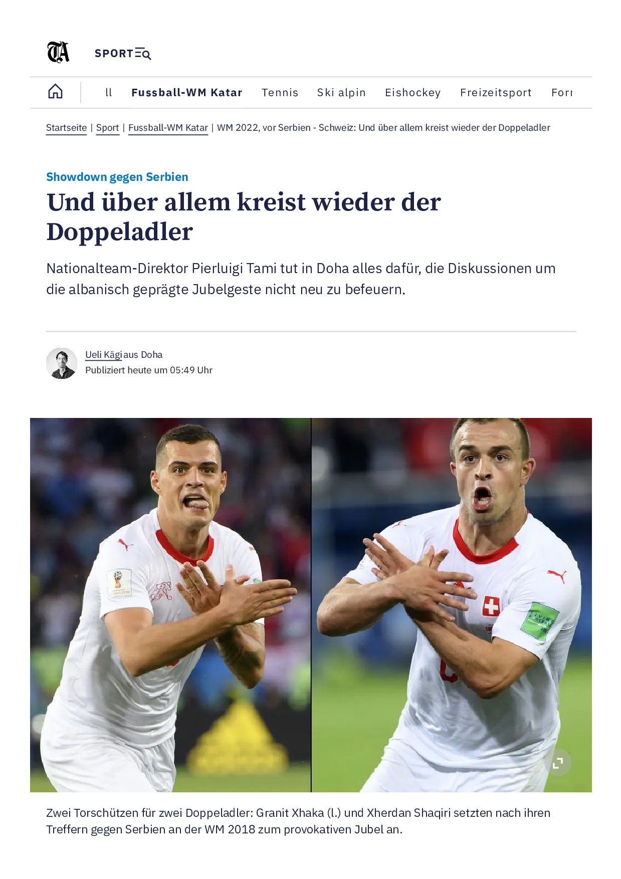 «WM 2022 Serbien - Schweiz und über allem kreist wieder der Doppeladler» (Tages-Anzeiger)